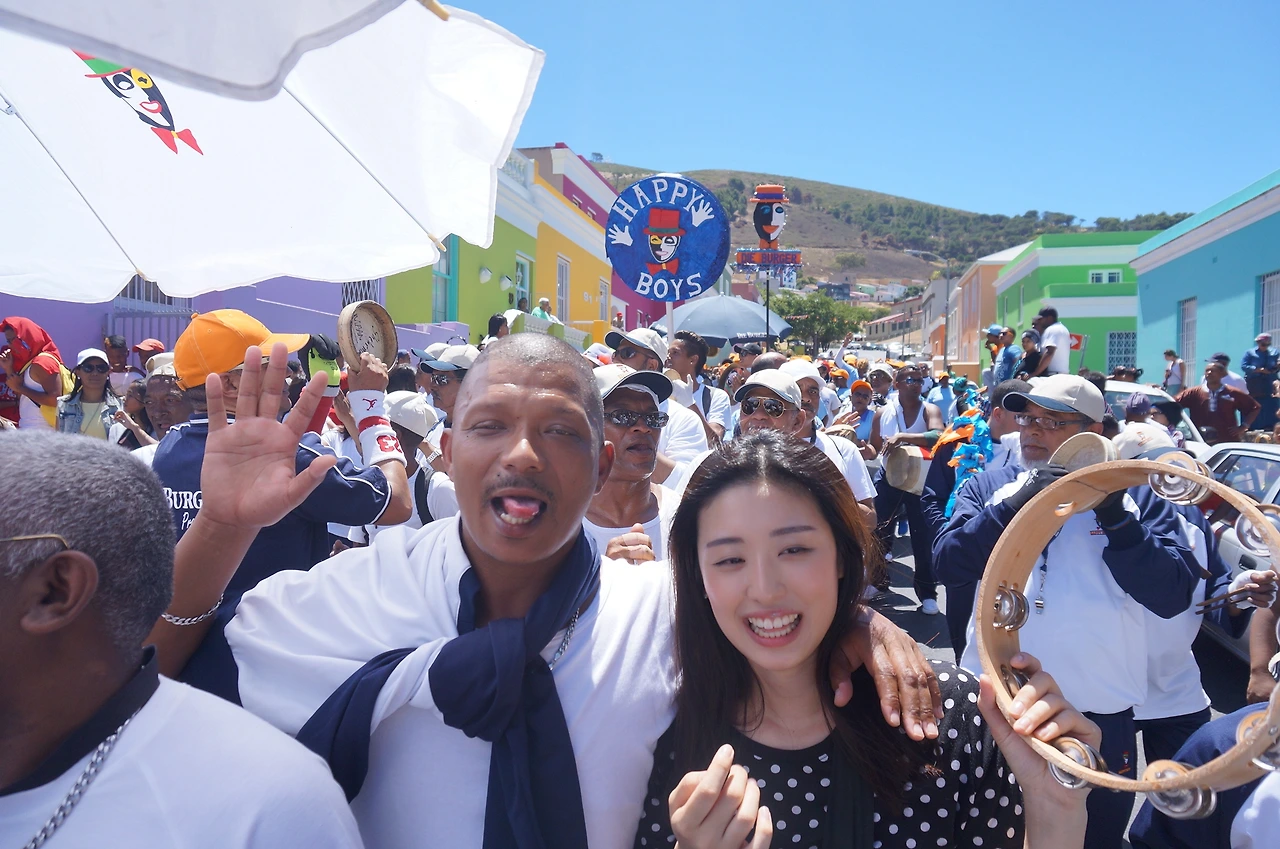 알록달록한 보캅마을에서의 퍼레이드, 흑인과 백인 모두 다같이 잘 살자는 의미라고 했다.