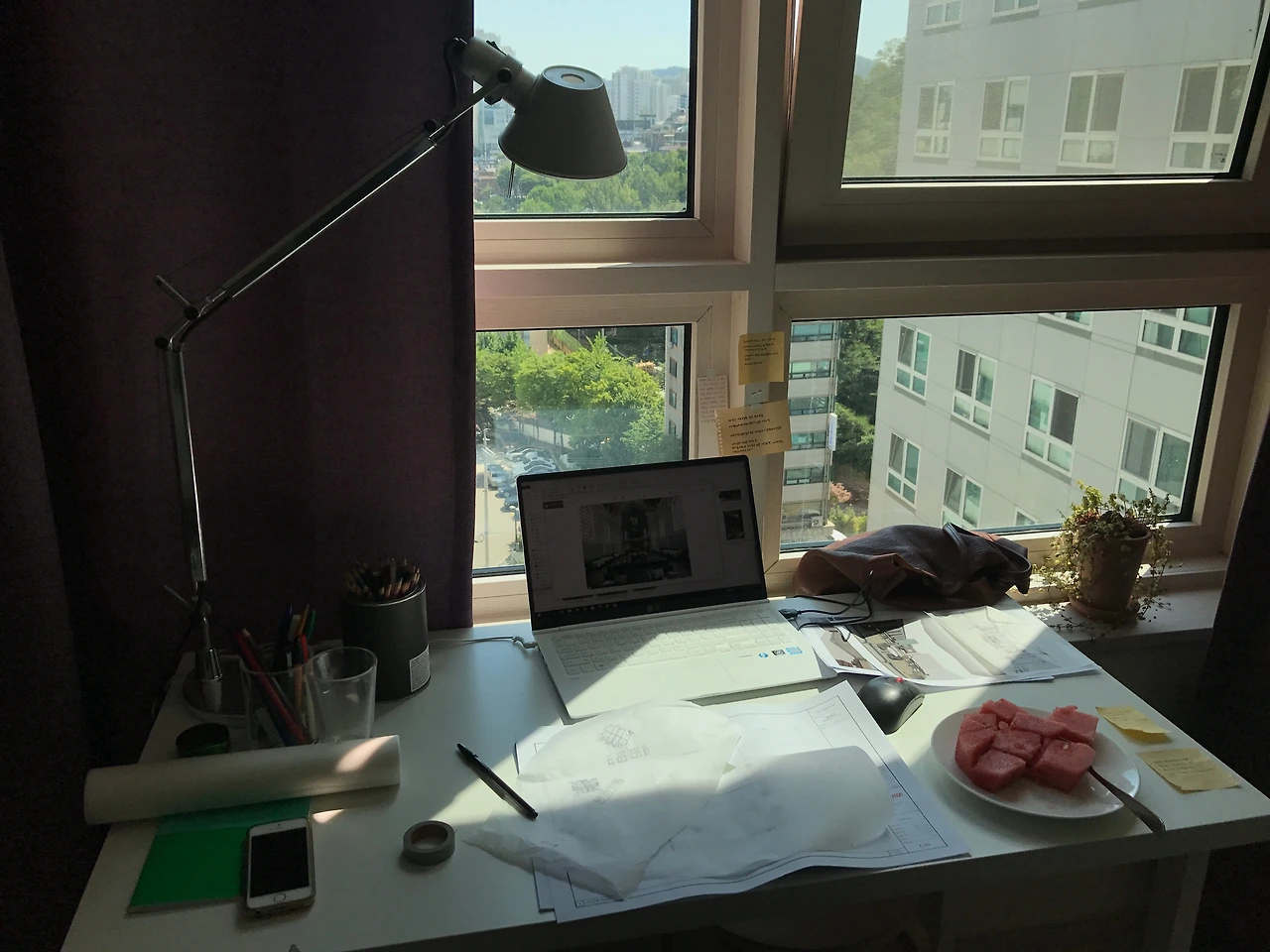 나는 어떤 목적지의 공간에 도달하기 직전에 ‘거쳐가는’ 공간을 중요하게 생각한다. 복도나 전실 같은 공간들이 그것이다. 우리가 우아하고 근사하다고 느끼는 공간들에는 항상 그 기대감을 안고 지나던 복도와 전실들이 있었다. 호텔의 스위트 객실을 떠올려보면 두 짝으로 된 커다란 입구 도어를 열고 들어가서, 콘솔 위에 꽃장식이 놓인 현관에서부터 거실을 지나 침실에 이르기까지, 근사한 전실들과 복도를 거쳐서 지나가도록 설계되어있다. 그 공간의 여정에서 오는 풍요로움의 감정이, 우리가 느끼는 우아함과 근사함의 정체가 아닐까 생각한다.