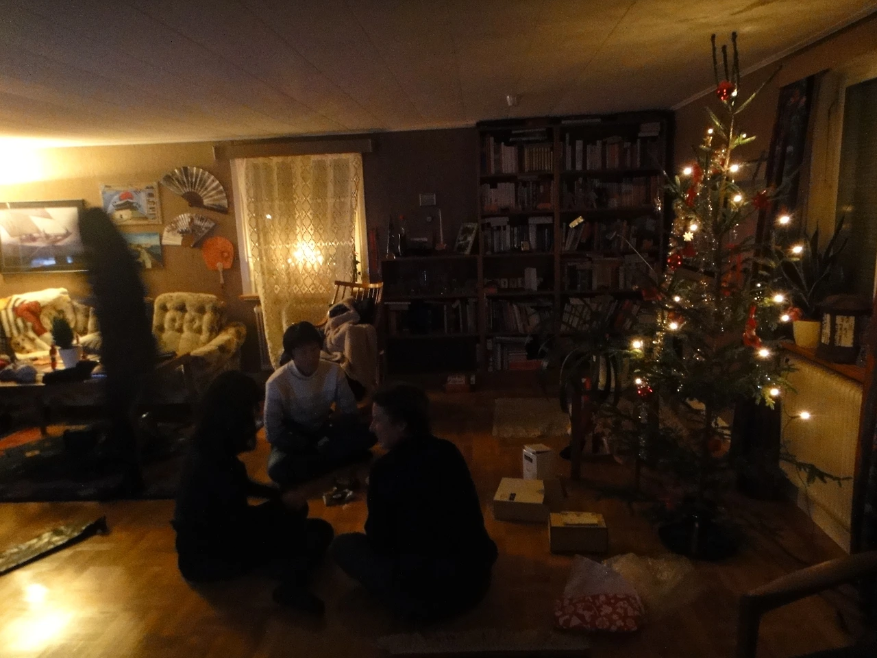 그 오렌지 빛으로 가득 찬 밤의 장면이 너무 인상 깊었던 나머지, 그 집에 가구가 어땠는지 벽의 색깔이 어떠했는지와 같은 것들은 속속들이 기억이 나지 않는다. 내가 기억하는 벽의 색깔은 벽지 위에 오렌지 빛깔의 조명이 한번 덧입혀진 색이다. 내가 기억하는 거실의 장면은 어둑하고 차분한 밤의 공기 속에서 한쪽에는 플로어 스탠드가, 한쪽에는 크리스마스 전나무에 둘러진 작은 전구들이 빛을 내고 있던 모습이다.