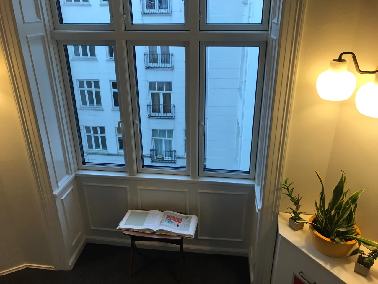 방을 나서면 안이 짙은 초록색으로 칠해진 작고 덜컹거리는 엘리베이터를 타거나, 창가에 옹기종기 식물이 놓여있던 계단실을 지나야 했다. 복도에서 이어진 계단을 따라 직조가 쫀쫀한 카펫이 깔려있었다. 창턱에는 토분에 담긴 작은 식물들이 놓였다. 벤치 위에는 근사한 식물 패턴을 모아둔 책 한 권을 편 채로 놓아두었다. 나무로 된 계단 난간은 손을 많이 타서 그런지 색이 깊고 매끈했다. 금테가 둘러진 그림들과 뿔이 달린 물소 머리가 벽에 걸려있었고, 방에 있는 것과 꼭 같은 벽부등에서 흘러나온 빛으로 복도와 계단실이 노랗게 빛났다. 돌아온 이후에 더욱 잔잔하게 생각이 나던 어떤 여행지의 방에 대한 기록이다.