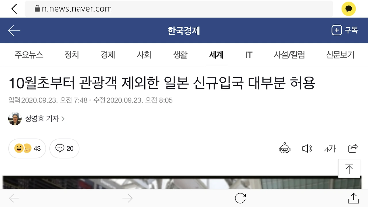 9월 23일. 드디어 반가운 뉴스가 떴다. 10월 초부터 관광객을 제외한 ‘중장기 체류자의 입국을 대부분 허용할 방침’이라는 내용이었다. 일본 정부 관계자의 말을 빌려, 우리나라를 비롯한 일본 언론의 보도가 이어졌다. 반가워 눈물이 절로 났다.