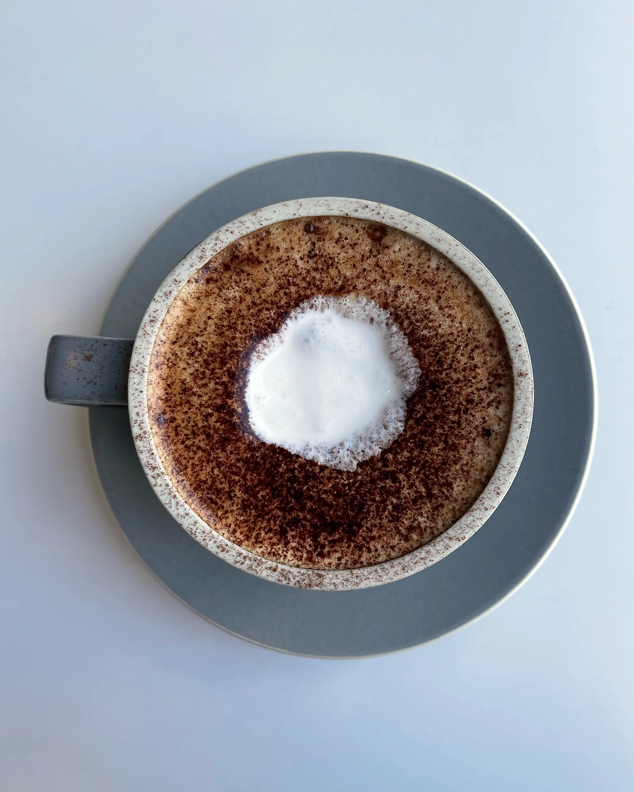 사진 속 커피는 맛이 깊고 진하다. 너무 달지 않은 고소함에 입이 즐겁다. 살살 뿌려진 시나몬 파우더 향도 좋고. 무엇보다 잔이 예쁘다.
