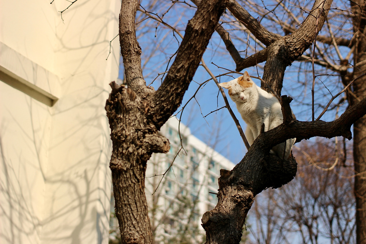 주말 오전, 너그러운 햇살이 조용히 떨어지는 차가운 공기 사이로 묵직하고 단단한 카메라를 쥐고 걷는다. 아직은 아리한 공기 중에 희미하지만 분명한 봄내음을 느낀다. 여유를 아는 고양이들 앞에 앉아 그들의 여유를 담는다. 그렇게 나는 그들에게서 여유를 얻어간다.