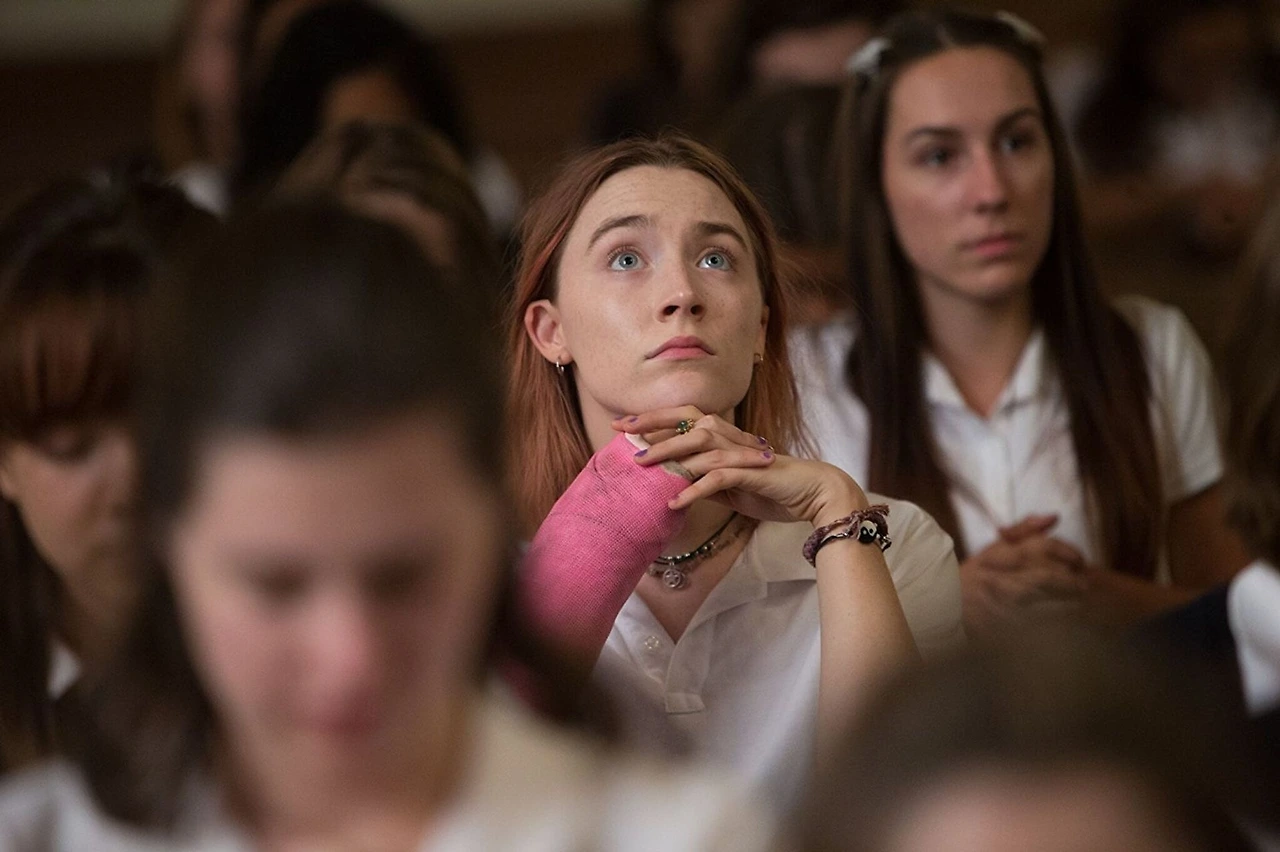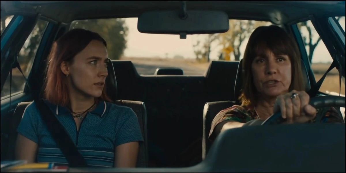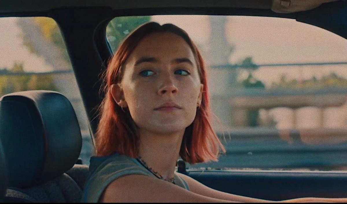 수많은 단어 중에 그녀는 이 두 단어를 선택했다. 전혀 연관관계가 없어 보이는 이들이 한 사람을 표현하고 있다. lady. 요즘 들어 영국 시대극 시리즈나 영화를 즐겨 보았는데 상류층 여성들의 호칭에서 ‘레이디’라는 단어를 자주 들을 수 있었다. 그래서 그런지 그 시절 사교계 여성들의 이미지가 떠올랐다. 레이디 버드는 스스로 ‘교양 있는 숙녀, 아기씨’가 되고 싶었던 걸까. 그렇다면 ‘bird’는 어떤 의미였을까. 그녀는 고향인 새크라멘토를 떠나 뉴욕에서의 대학 생활을 꿈꾼다. 자유롭게 훨훨 날아가길 꿈꾸는 레이디 버드는 아직 제대로 날아오르지 못하고 둥지에서 떨어져 보며 시행착오를 겪고 있다. 오프닝 시퀀스에서 그녀는 엄마와 티격태격 싸우기 시작하더니 엄마의 무분별한 공격에 결국 터지고 만다. 그녀는 달리는 차에서 갑자기 문을 열고 뛰어내린다. 지긋지긋한 둥지를 떠나 날아가고 싶다. 하지만 아직 날 준비가 덜 된 그녀는 당연히 맨바닥에 헤딩하듯 떨어지고 팔이 부러진다.