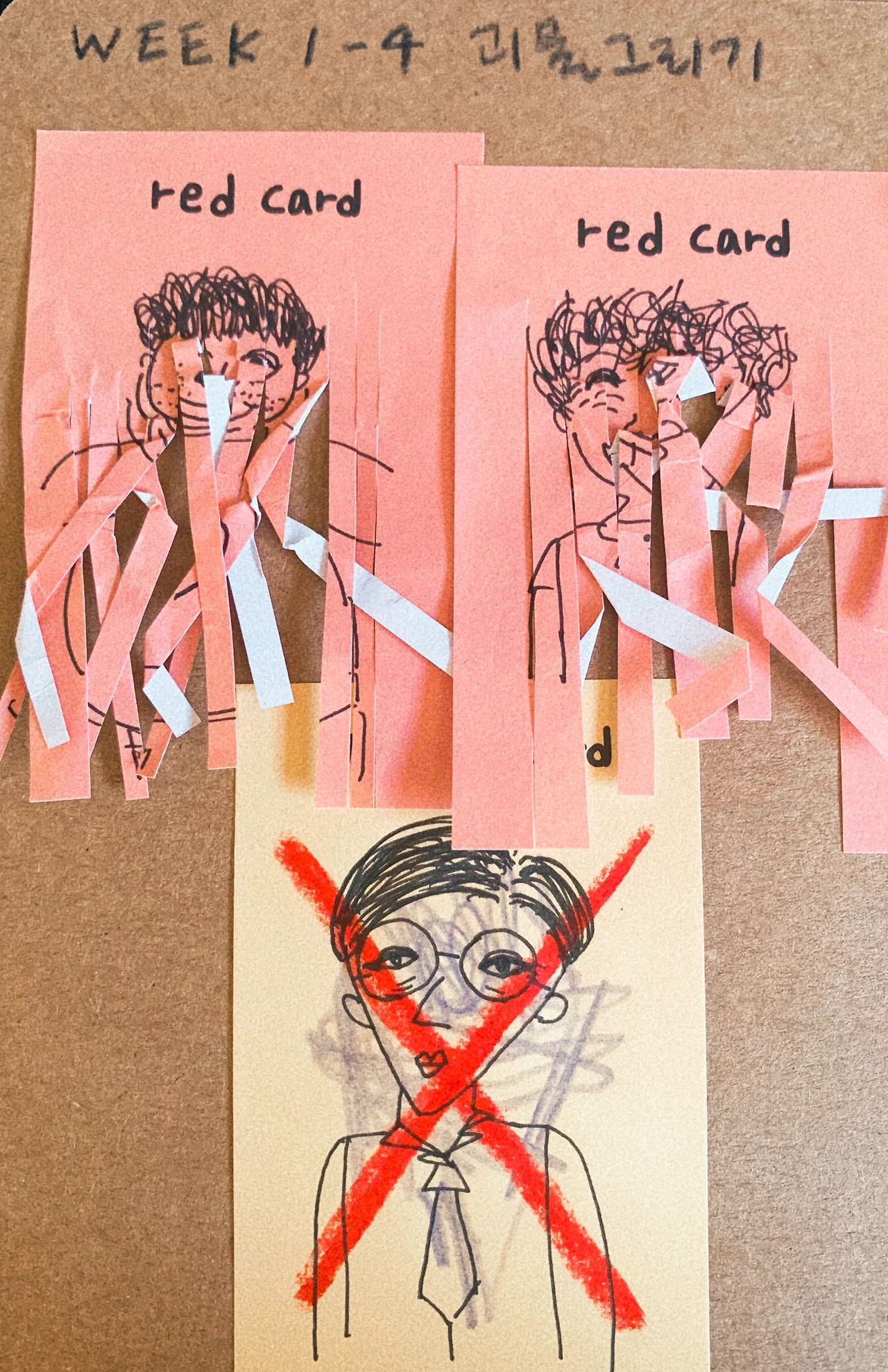 그림을 그리고 오리거나 주먹으로 때리면서 내 생각보다 기분이 훨씬 좋아졌다. 그리고 괴물들이 내 머릿속에서 점점 작아짐을 느꼈다. 좋은 심리치료를 받는 듯한 기분이 들었다. 공교롭게도 다 나이 많은 아저씨들이었다. 괴물들 사이에서 그런 알 수 없는 공통점을 느끼고 나서 그들이 더 싫어졌다. 하지만 이제 더 이상 내 인생과 삶에서 아무런 영향도 끼치지 못하는 인간들이라는 사실을 깨달았다. 내가 그렸지만 꽤나 그들과 비슷하게 그렸기 때문에 더 싫었고, 그리고 물론 내가 그렸지만 눈깔이 너무 꼴 보기 싫어서 눈 부분을 주로 때렸다. 주먹으로 쾅쾅 내려칠 때 묘하게 기분이 좋아졌다. 혼자 이러고 있는 게 약간 사이코패스 같다고 느껴졌지만 내 속은 훨씬 후련하고 시원해졌다. 뭔들 저들이 씨부린 말을 듣고도 내가 이렇게 혼자서 푸는 게 오히려 더 천사 같다고 생각했다. 나는 천사다. 이제는 저들을 아예 신경 쓰지 않게 되었다. 이제 저들과 나는 상관없는 서로 사람이다.