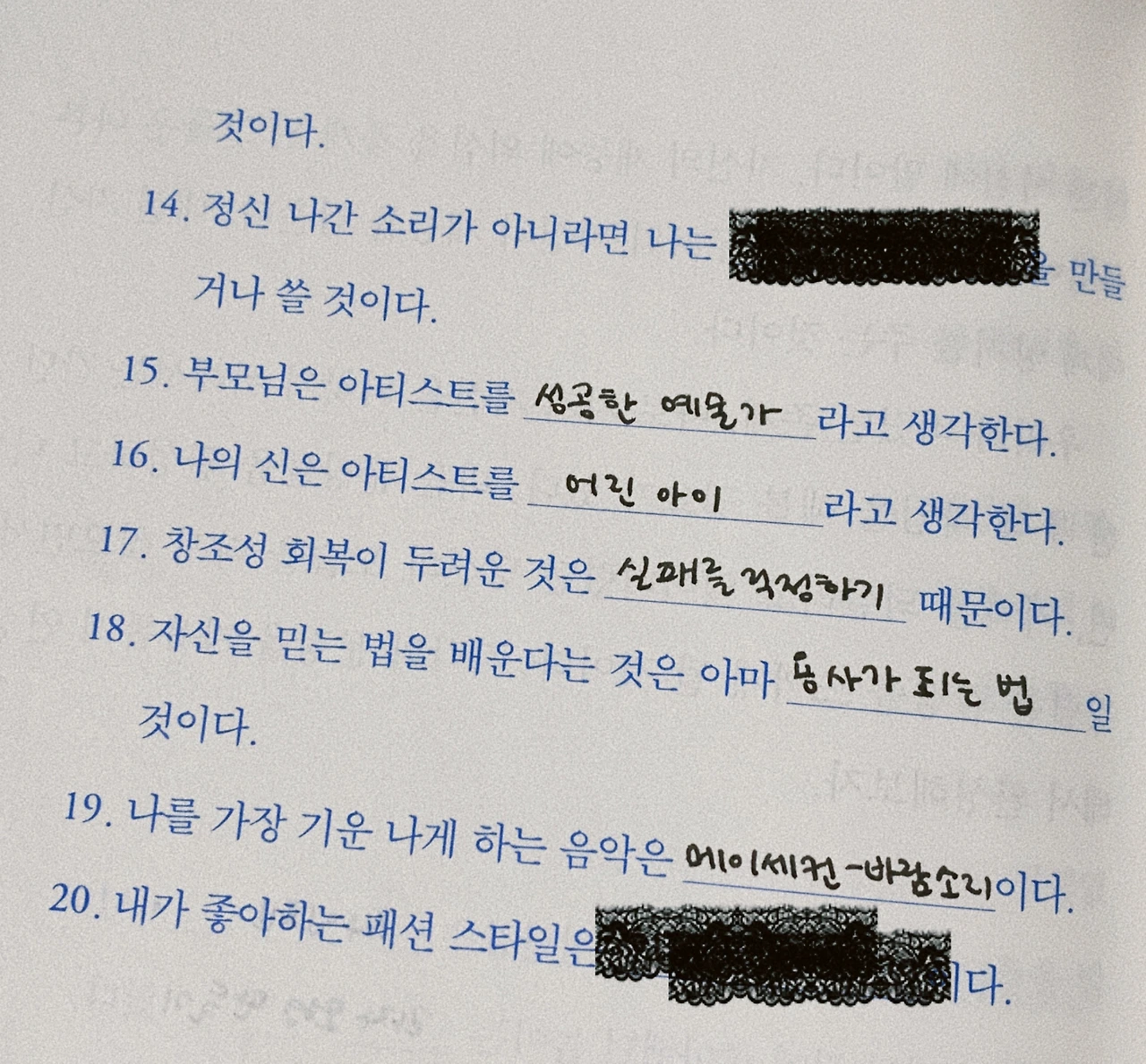 드디어 3주 차에 진입하게 되었다. 3주 차부터는 본격적으로 외부의 소음으로부터 나 자신을 지키는 것이 가능해졌고, 아티스트 웨이의 개념과 과제를 그 전보다 더욱 신뢰하는 마음으로 접근하기 시작했다.