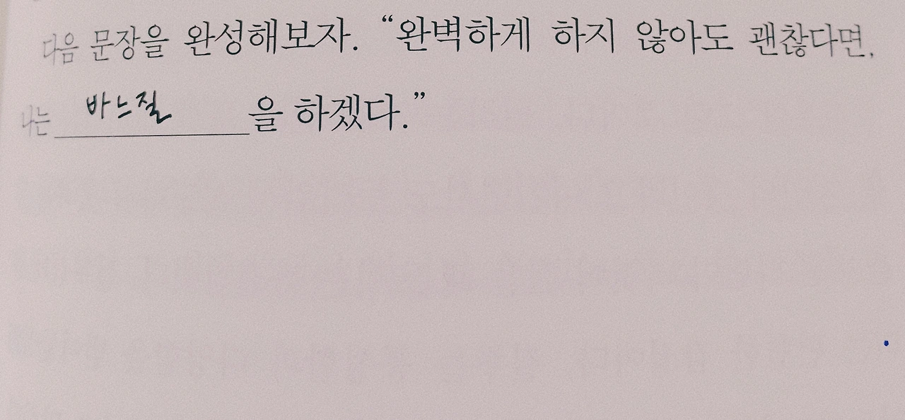 나도 그랬다. 하지만 내 완벽주의는 강박에 가까웠다. 그래서 생각해낸 대안책이 바로 중간중간 피드백을 자주 할 수 있는 체크 포인트를 만드는 것이었다. 모든 것을 엎어버리지 않고 체크 포인트에서 방향을 자주 수정해주면 되는 것이다. 대신에 그 체크 포인트가 되기 전까지는 절대로 뒤엎거나 수정하지 않는다. 일단 참고 끝까지 해본다.