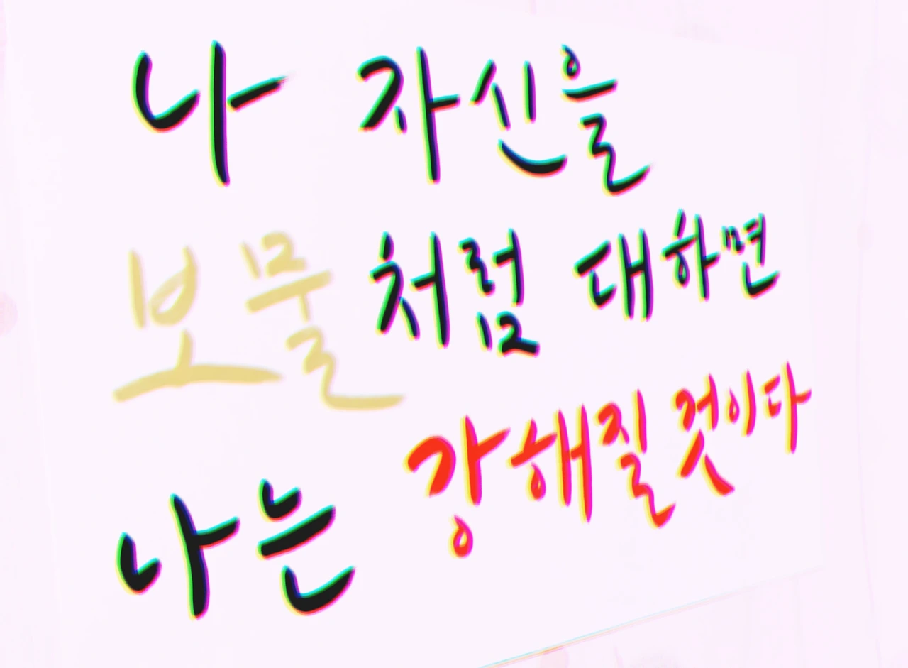 나는 침대 위의 벽에 붙여두었고 멋스러운 건 잘 모르겠다. 근데 잘 보여서 각인되기는 쉬울 것 같다. 이 문장은 생각보다 힘이 더 강하다. 나도 모르게 나를 포기하거나 방치하고 싶을 때 나 자신을 챙기도록 한다.