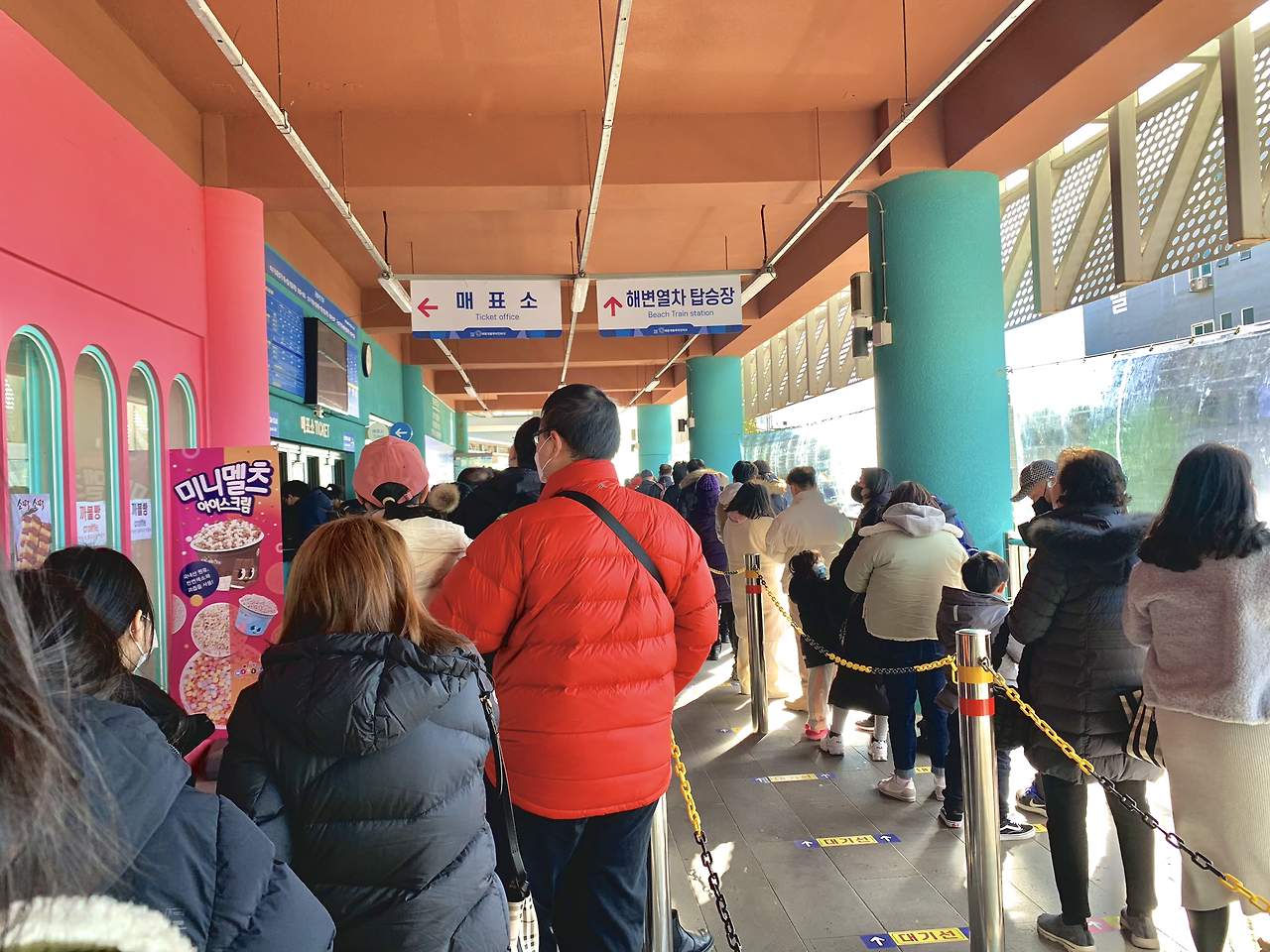 2023년 1월 2일, 엄마 휴가를 알뜰살뜰하게 쓰기 위해 아빠, 엄마, 나는 아침부터 부산 해변 열차를 타러 왔다. 우리는 마포정거장에서 탔는데 사람 무슨 일 .. 역시 놀이동산 뽕뽑는 민족은 다르다니깐 .. 어쨌든 커플 사이에 딸려온 사진기사(아이폰 보유)는 벌써부터 버킷리스트 이룰 생각에 설렜읍니다 (^^)