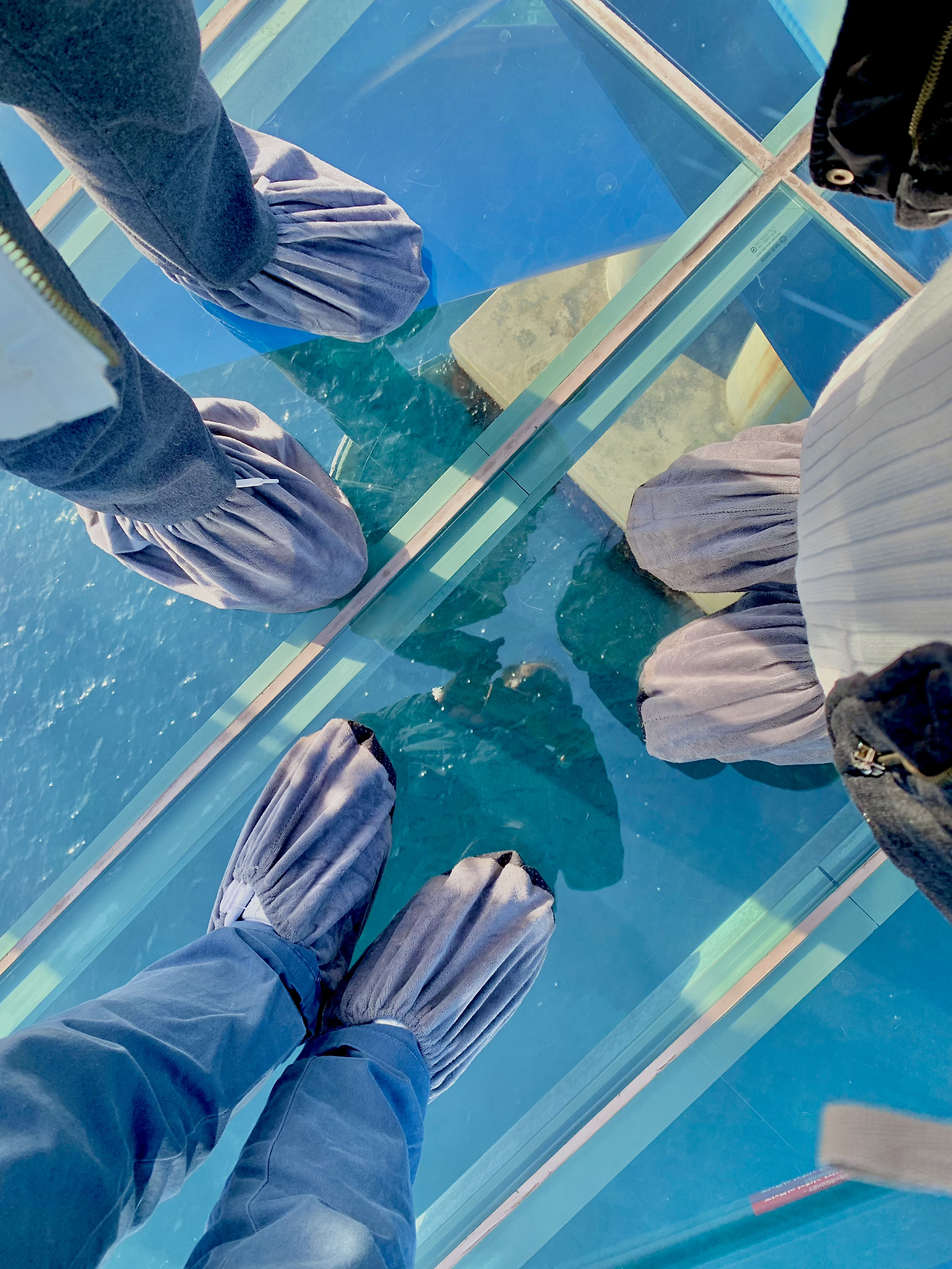 고소공포증 있는 중년 커플과 함께 스카이워크 위에서 신발컷. 사진기사는 매우 즐거웠다.