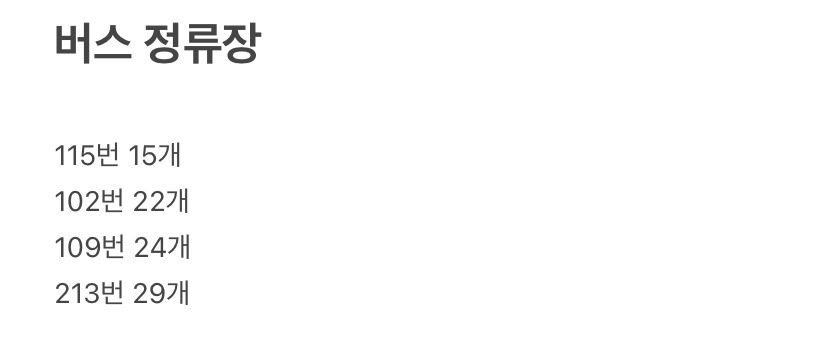 출근 버스 중 가장 노선이 짧은 버스를 알아내려고 일일이 정류장을 세어본 흔적.
