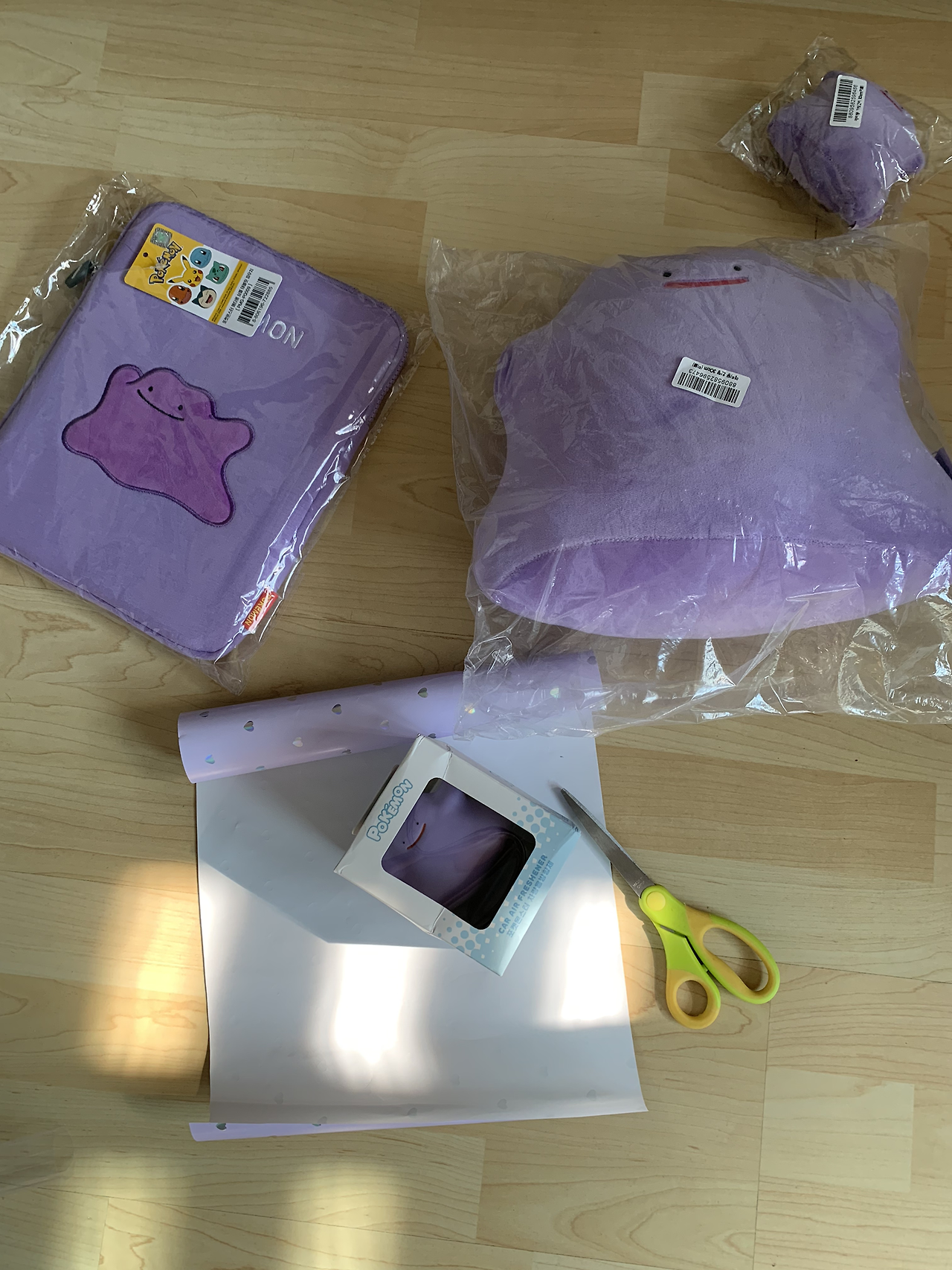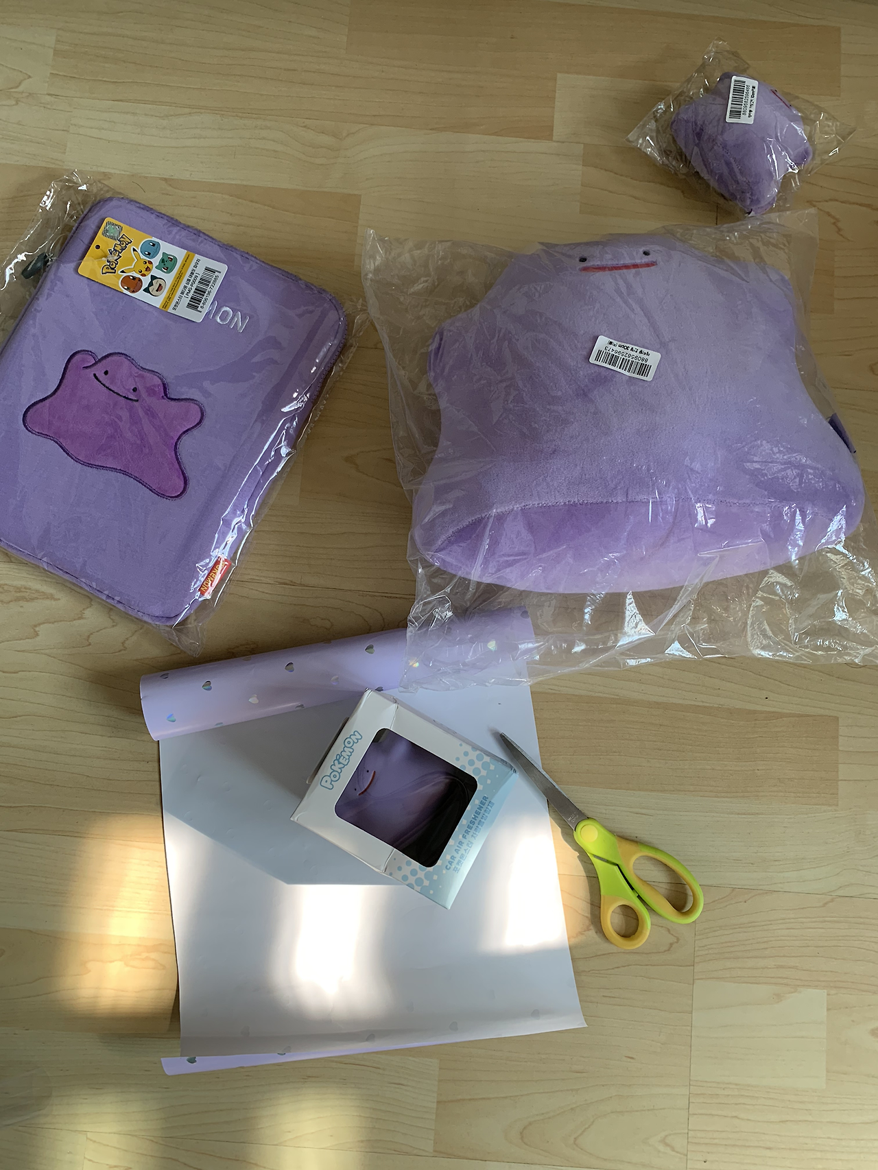 친구 생일 선물 포장. 메타몽을 좋아하는 친구를 위해 보라색 포장지로 온갖 메타몽들을 포장했다 ! 즐거웠던 시간.