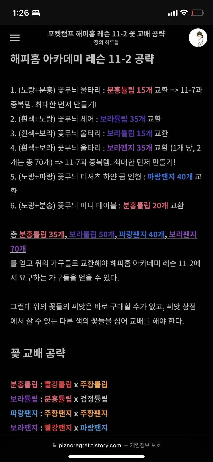 동물의 숲 포켓캠프 꽃 재배 공략. 귀엽고 간단한 힐링게임에도 이런 규칙과 확률, 조합이 공략적으로 정리될 수 있다는 게 놀라웠다. 역시 마니아를 잡아두려면 난이도가 높은 히든 요소가 있어야 하나보다.