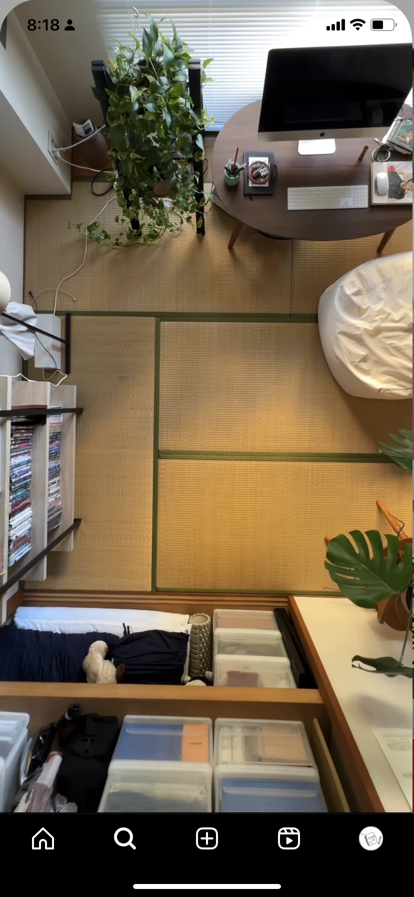 다다미방을 항공샷으로 촬영한 사진. 나도 이런 작고 안락한 공간을 가지고 싶다.