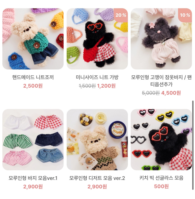 너무 귀엽다 . . . ! 모루인형으로 만들거면 저기에서 악세사리들을 사야겠다. 아직 모루인형을 만들지 바느질을 할지 고민중. 모루도 너무 귀여운데 . . . 악세사리가 많아서 꾸미기에 좋을 것 같음.