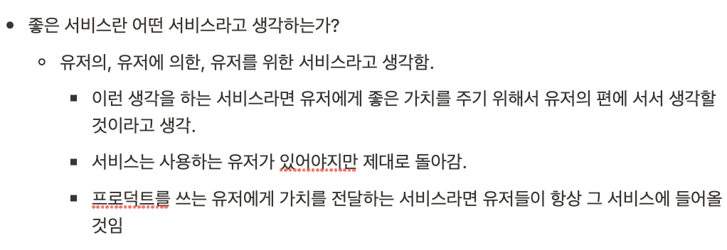 이전에 혼자서 정리해 둔 글에 '좋은 서비스란 무엇인가?'라는 질문에 유저의, 유저에 의한, 유저를 위한 서비스라고 적어둔 부분을 찾았습니다. 초심을 찾아야겠습니다.