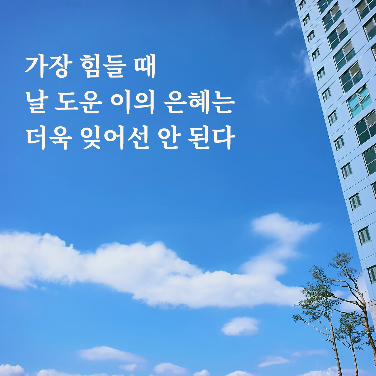 가장 힘들 때 날 도운 이의 은혜는 더욱 잊지 말기를