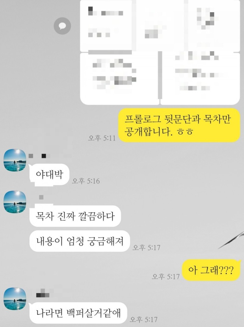 종이책으로는 다섯 번째 책을 준비하고 있다. 처녀작부터 지금까지 단 한 번도 격한 응원을 잊지 않은 그녀다. 한두 권은 지인들에게 "내 책 나왔으니, 사서 꼭 읽어 봐!"라고 말할 수 있어도, 세 권이 넘어가면 괜스레 미안해진다. 그래서인지 언제부턴가 책이 나와도 지인들에게 소식은 전하돼, 구매를 유도하진 않는다. 강매당하는 기분일까 봐. 그런데 그녀는 다른 이들과는 좀 다르다. 책이 나오자마자 구매하는 건 물론, 여분의 책을 더 구매해 자신의 지인들에게 선물한다. 이 행위가 절대 쉽지 않다는 걸 너무나 잘 알기에, 더없이 고맙고 미안하다. 더 좋은 글, 마음 따스한 글로 보답 아닌 보답을 하고 싶다. 진심으로.