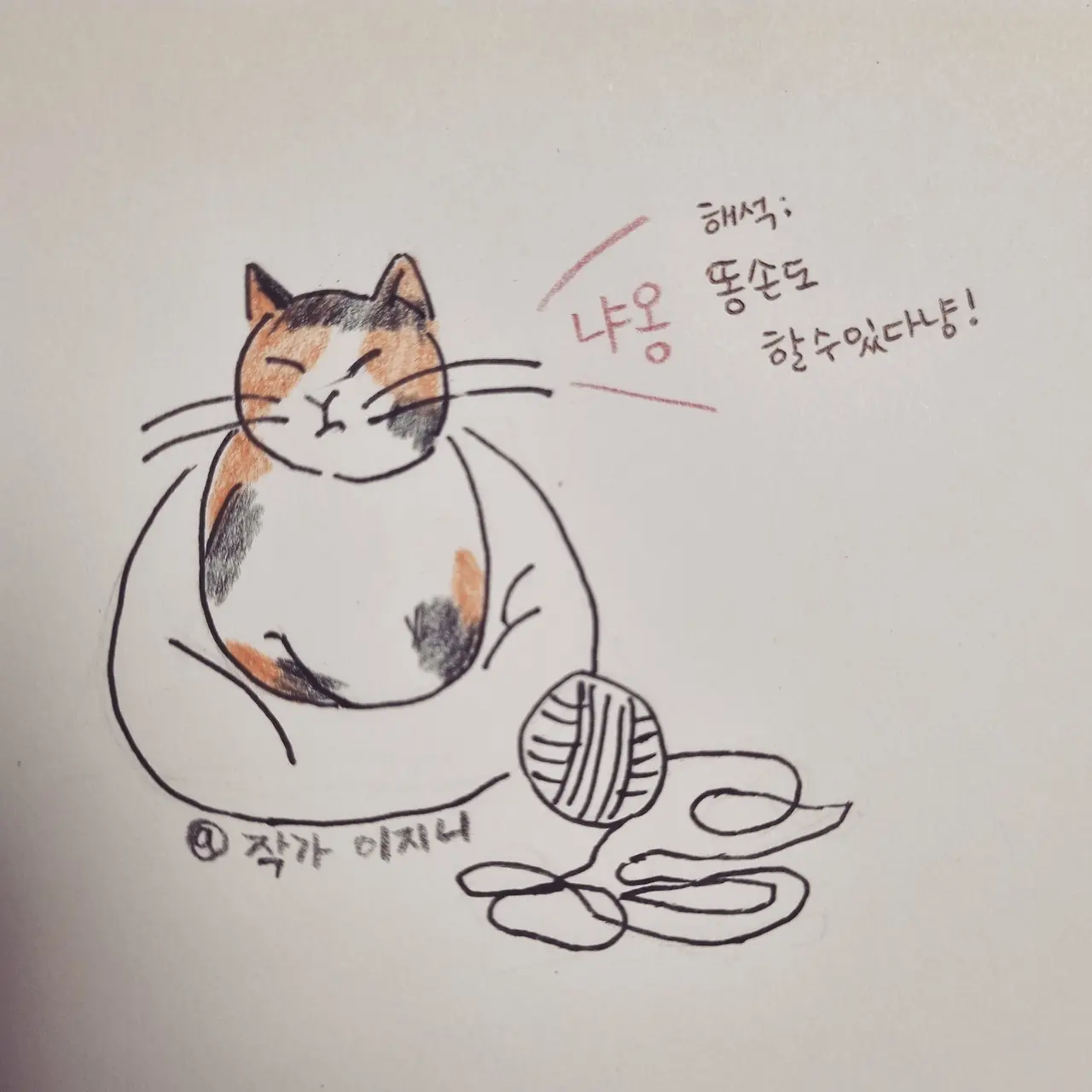 나와는 정반대로 실력이 상당히 좋은 친언니한테 그림을 보여주니 '병맛'이지만 '개성'이 뚜렷하단다. 하하. 그래, 그럼 됐다! 실물과 비슷한 구석이 한 개도 없지만, 최선을 다해 그렸다. 더불어, 이 그림과 아래에 적힌 멘트로 타인에게 웃음을 드렸다면 그걸로 족하다.