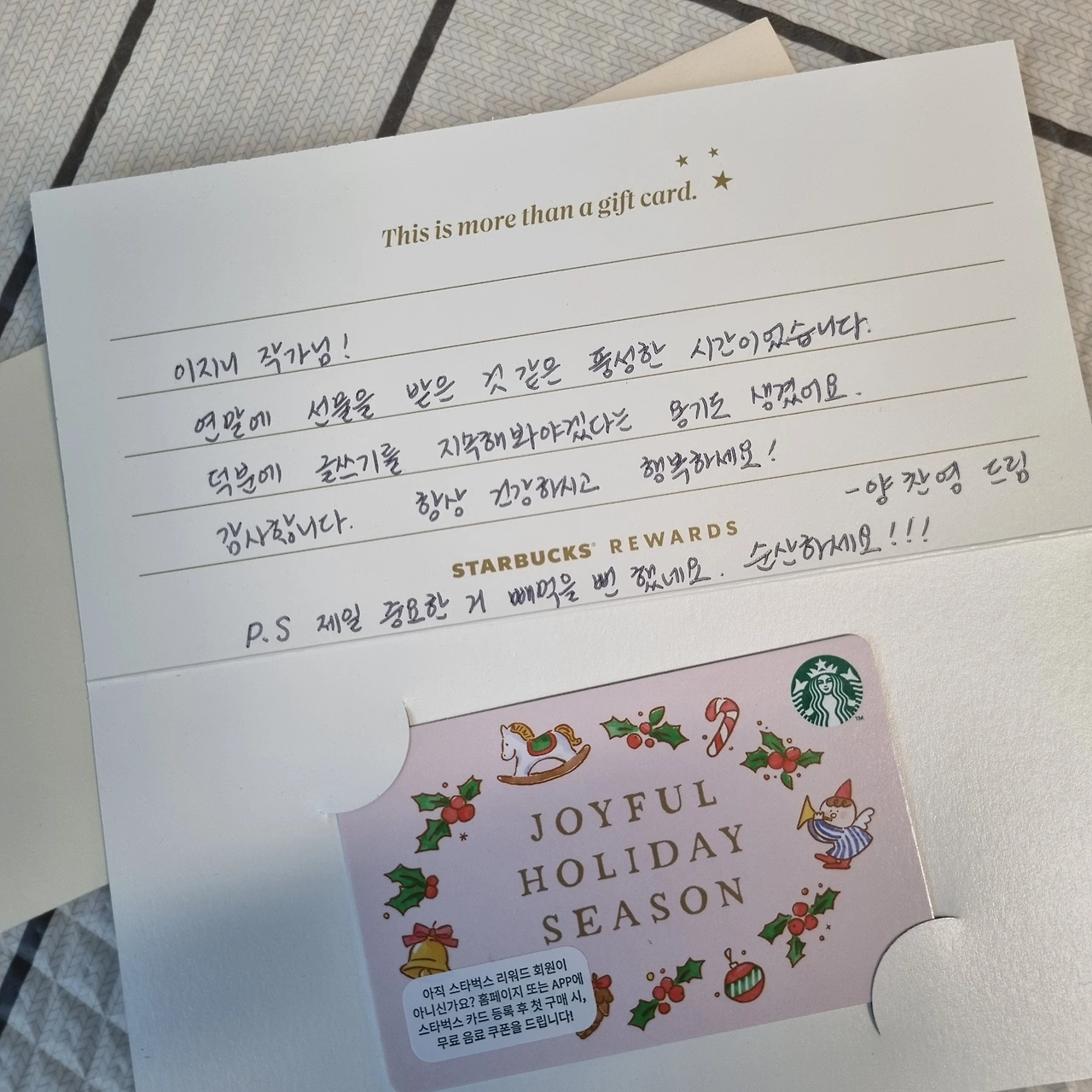 6주, 총 12회 차까지 쭉 함께해 주신 것도 감사한데, 제게 되레 감사하다며 선물과 메시지를 주신 분들도 계셨어요. 개인 이메일로 따스한 메시지를 이미 받았는데... 이렇게 또... ㅠㅠ... 정말 감사합니다...