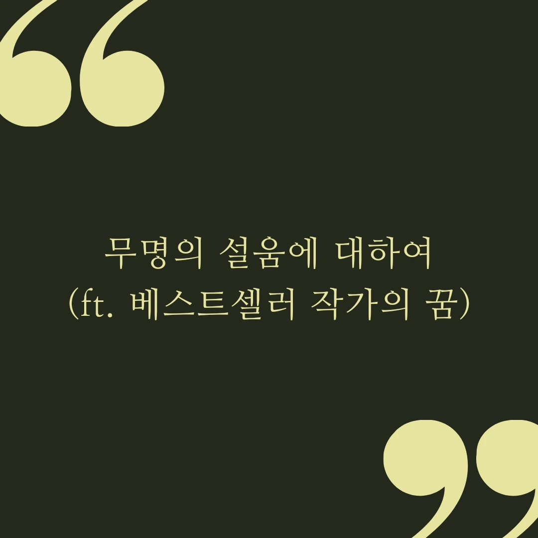 무명의 설움은 내 마음까지 옮겨 놓았다. '단 한 사람이라도 내 글을 읽어 주셔도 감사하다'를 '더 많은 사람이 내 책을 읽어 주시면 좋겠다. 그래서 나도 베스트셀러 작가가 되고 싶다'라는 마음으로.
