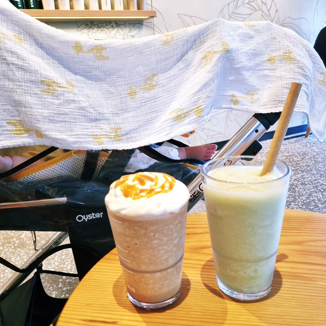 한결 가벼워진 마음으로 쇼핑몰에 들렀습니다. 둘째 걱정으로 아침도 안 먹고 나간 탓에 배 속 거지들이 난리를 쳐서 회전 초밥으로 달래주려고요. 식사 후 시원한 캐러멜 마키아토까지 마시니, 머리부터 발끝까지 충전된 듯했습니다.