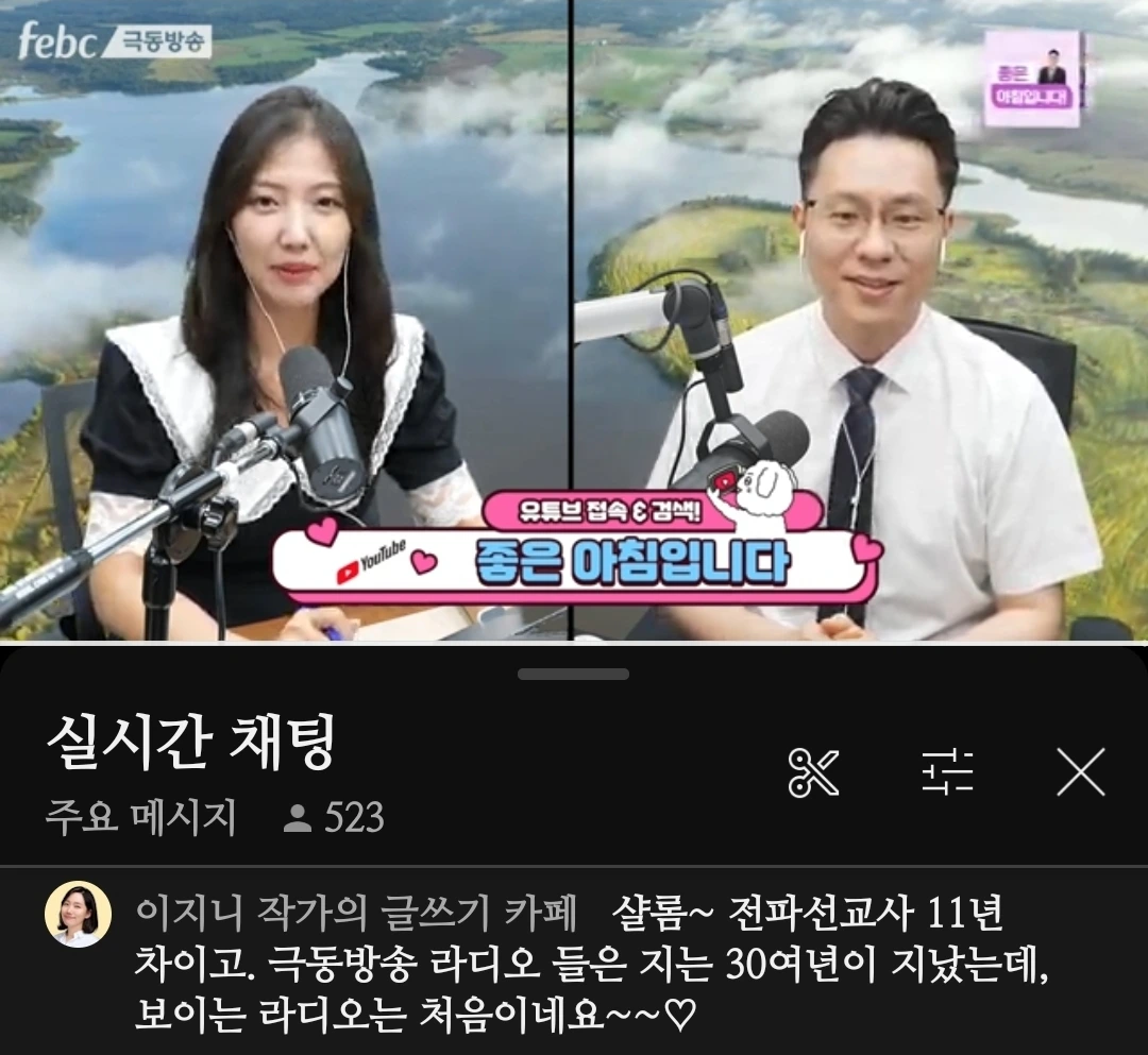 30년 넘게 들어온 라디오를 눈으로 본다는 것이 묘하게 설레었다. 나는 얼른 스마트폰을 꺼내 유튜브를 켜고, 보이는 라디오에 접속했다. 화면 속 스튜디오가 눈앞에 펼쳐지자 반가움과 신기함이 교차했다. 그리고 잠시 후, 나는 주저 없이 댓글 창을 열었다.