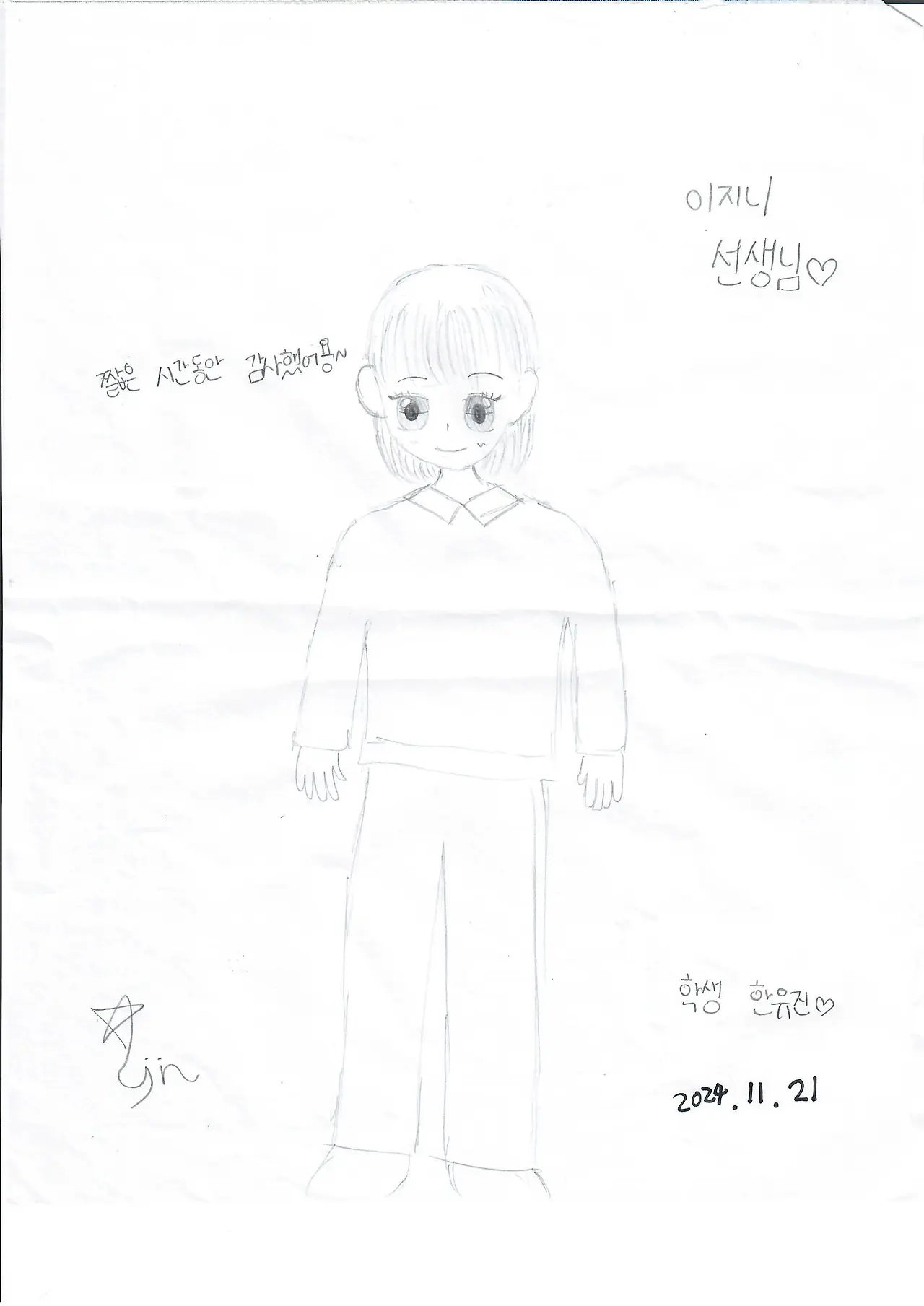 이번 글쓰기 수업을 통해 또 한번 깨달았다. 글쓰기는 단지 기술이 아니라, 마음을 나누는 일이라는 것을. 아이들이 나에게 선물한 사랑은 내게 더 큰 선물이 되었다. 비록 수업은 끝났지만, 그곳에서 함께했던 시간은 마음속에서 계속될 것이다. 그리고 언젠가, 아이들이 성장해 글로 자신의 이야기를 전하는 모습을 떠올리며 미소 짓게 될 날을 기대한다.