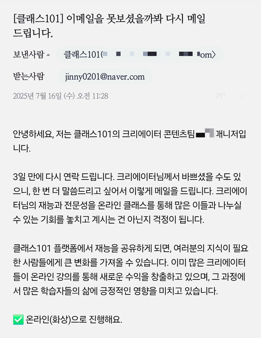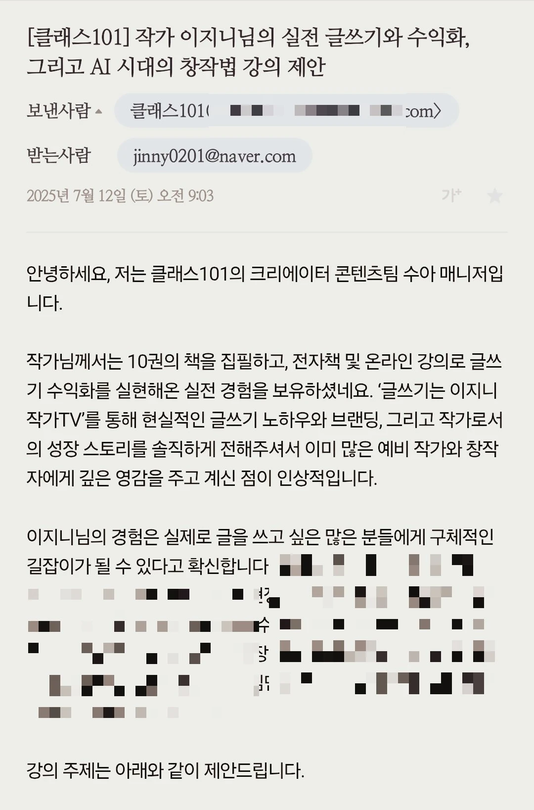 나는 이번 제안을 거절했지만, 2025년도의 클래스101이 ‘절호의 기회’가 되는 경우도 많다. 예를 들어,