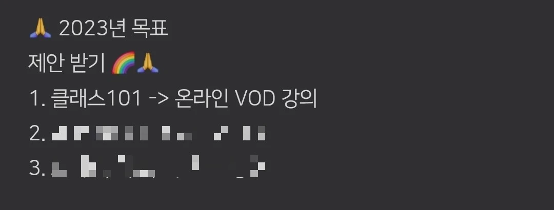 2년 전, 나는 이런 꿈을 메모 앱에 적었다. 그때의 나는 '클래스101'이 꿈을 향한 멋진 무대처럼 보였다. 내 글쓰기 강의를 더 많은 사람에게 보여주고 싶었고, 클래스101이 '이지니작가 글쓰기 수업'을 빛내줄 거라 믿었다.