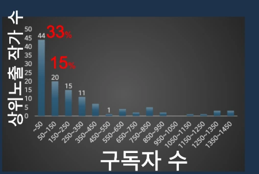 앞서 노출 명당자리를 위해 조사한 1월~4월 간 상위 노출 글의 브런치 작가 140명의 구독자 수를 조사해 보았다.