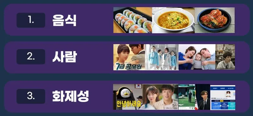 화제성 : 사회 문화 경제 엔터테인먼트 전반에 걸쳐 현재 이슈가 되고 키워드를 말한다.
