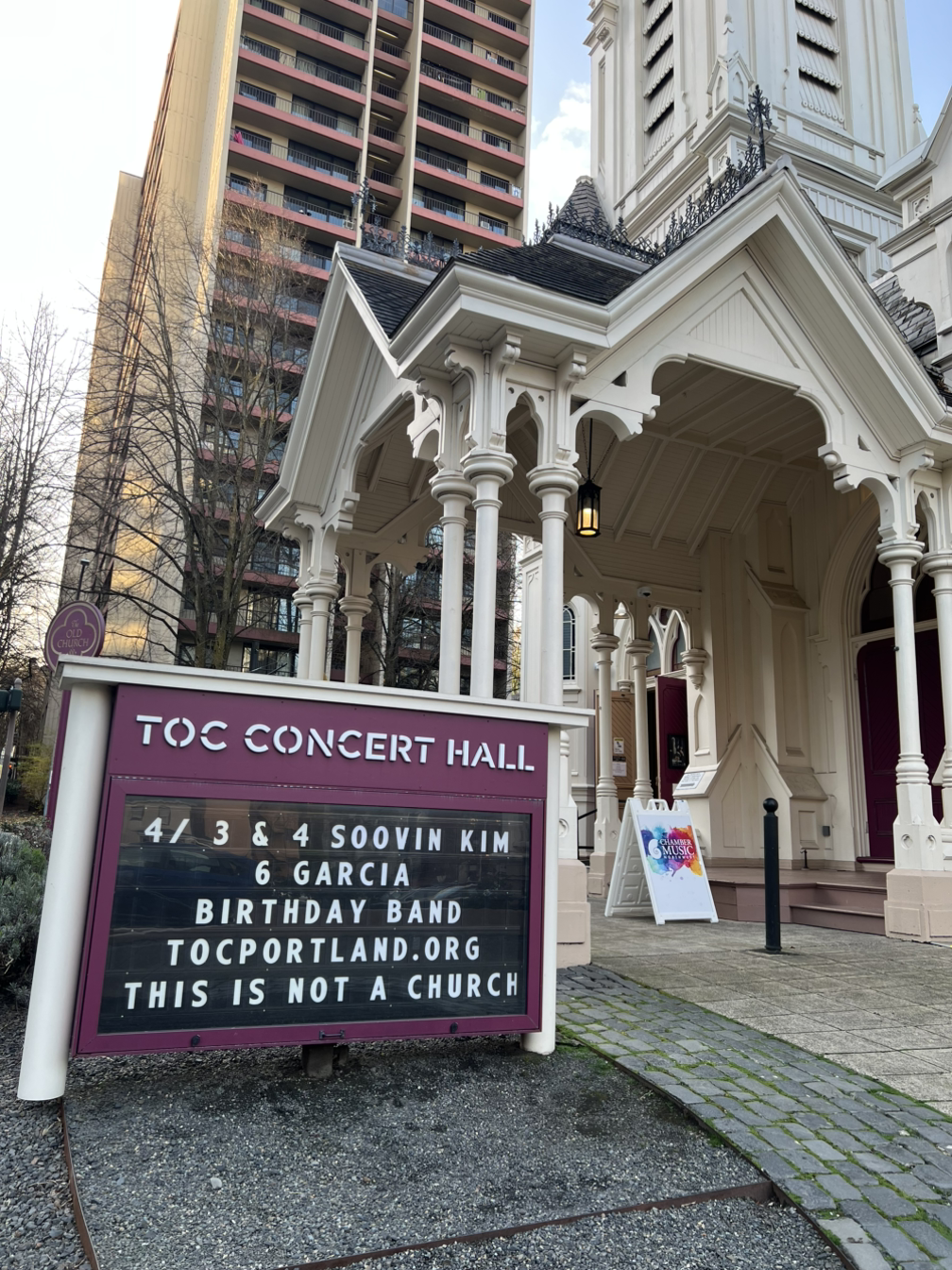우리나라에서는 실내악이라 번역되는 챔버뮤직은 보통 듀오, 트리오, 콰르텟 등 다양한 구성의 소규모로 함께 연주하는 것을 말하는데 악기의 편성이 작기 때문에 연주되는 공간도 작은 홀이 적합하다. 그런 면에서 포틀랜드 시내에 위치한 TOC (The Old Church)는 말그대로 예전에 교회로 쓰던 공간을 더이상 종교적 용도로 사용하지 않고 소규모 공연 용으로만 쓰는데 클래식 음악의 챔버뮤직을 연주하기에 매우 좋은 곳이다.