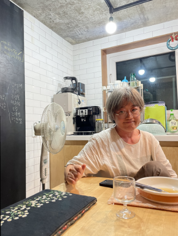 맛은 없어요. 내가 음식을 잘해서 한 게 아니라 그게 부담스럽지 않았으니까 한 거예요. 그게 어려운 일이라고 생각하지 않았어요. 그리고 그냥 우리 엄마가 늘 뚝딱뚝딱 하는 걸 봤고, 뚝딱뚝딱 하면 이게 나온다라는 거를 배웠지만 뚝딱뚝딱 해서 나오지는 않았죠. 그래도 음식 만드는 건 그렇게 어렵지 않았고, 이제 우리 아이들은 다 이제 둘 다 독립을 했으니 자녀 돌봄도 끝났고! 돌봄이 특별한게 아니라 그냥 내가 할 수 있는걸 하는 거죠.