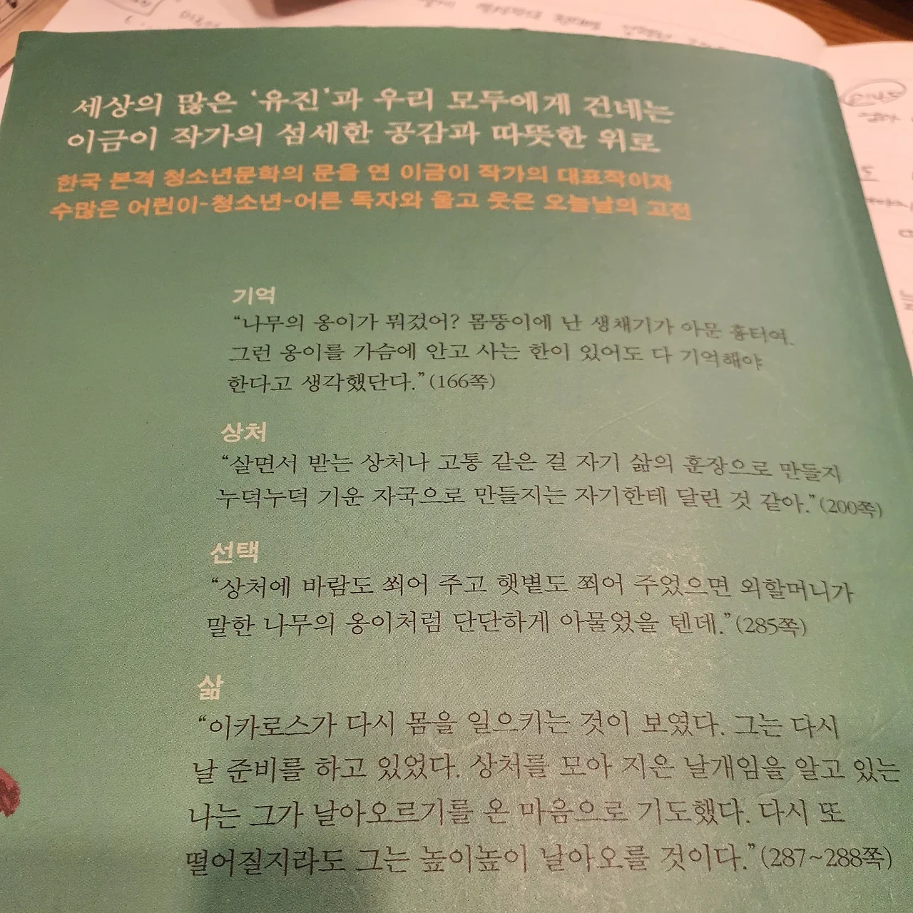 이 이야기는 예상치 못한 상처를 받은 큰유진과 작은유진의 두 주인공이 겪은 이야기를 풀어가는 청소년 소설입니다.