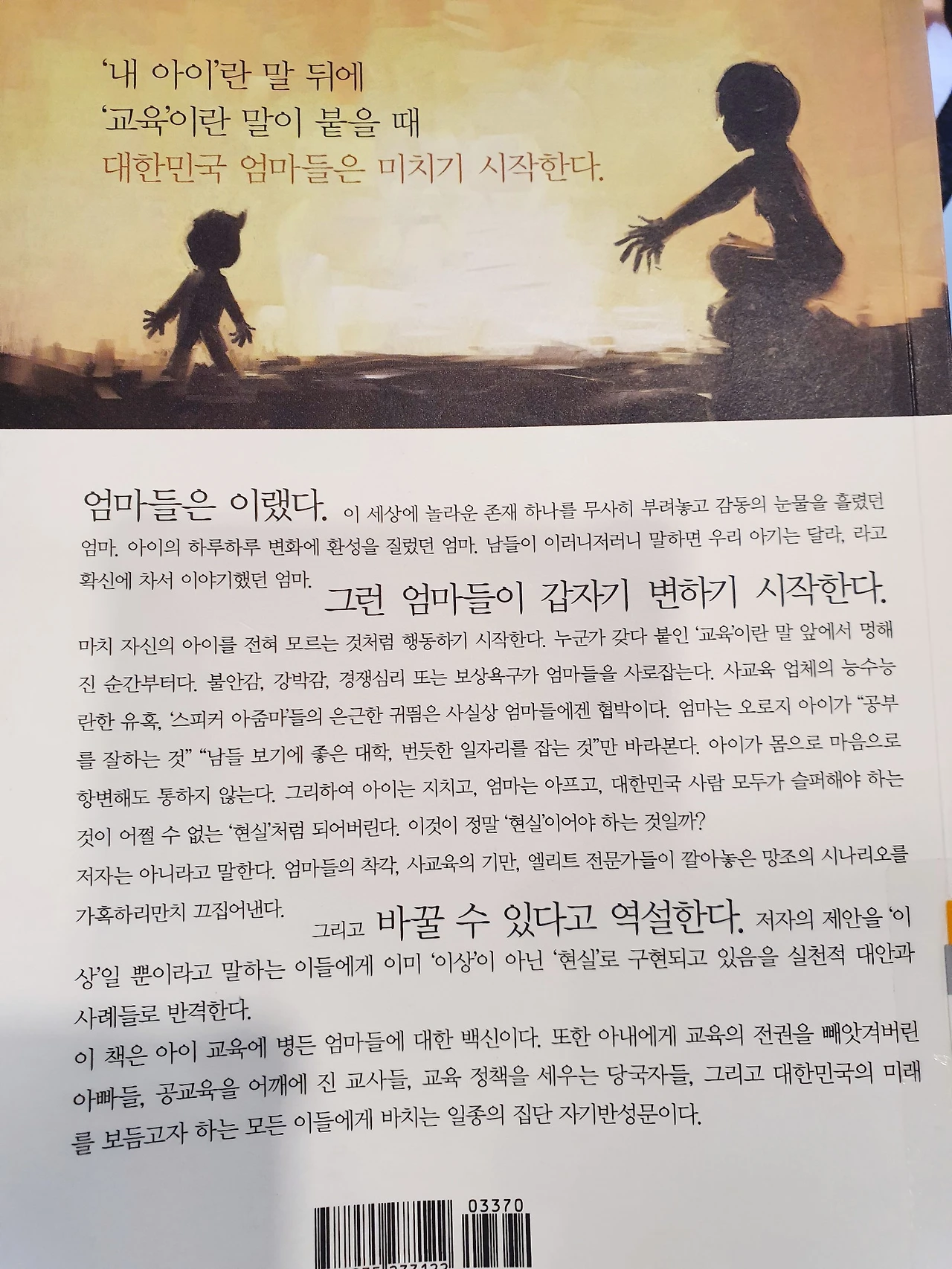 그러나 뭐니 뭐니 해도 가장 큰 공로자는 엄마들입니다. 학교 공부만으로 그날 할 공부 다 했다고 생각해야 정상이건만, 마치 무엇인가에 홀린 것처럼 아이들을 다시 학원으로 쫓아야 보내기 때문입니다. 아이가 아침에 일어나 밤에 잠들기 전까지 대부분 시간을 오로지 공부만 하고 산다는 것이 매우 비정상이라는 생각을 하지 못하는 엄마들의 상태에 대해서 우리는 심각하게 고민해야 한다는 이야기입니다."