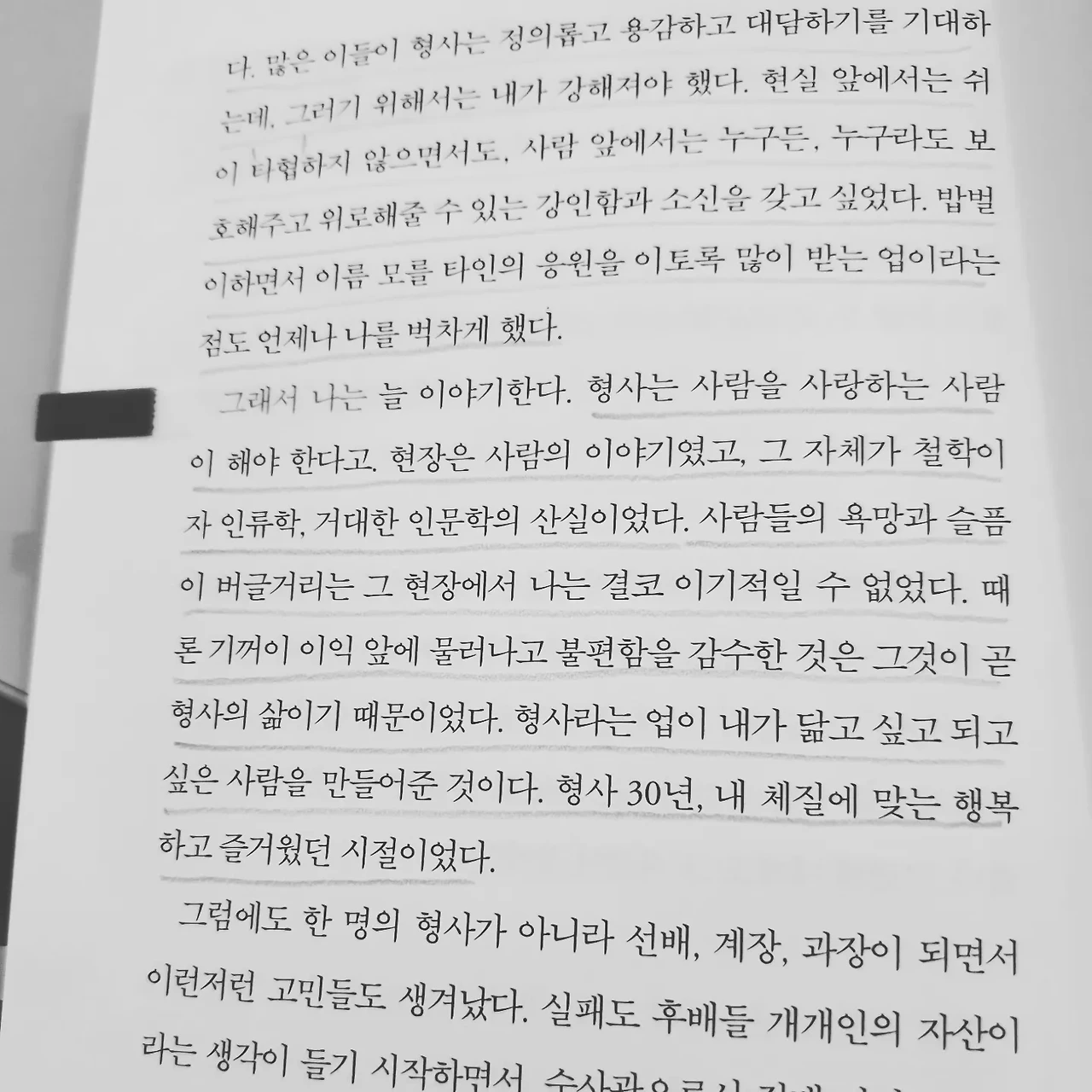 수많은 형사 중에 범죄자가 이 형사님을 만나는 건 인생을 되돌아볼 수 있는 기회를 주기에 행운이라는 생각이 들었다. 그리고 나도 그런 교사가 되려 하고(지금은 쉬고 있지만), 이렇게 휩쓸리지 않는 대쪽 같은 마음이 좋았다.
