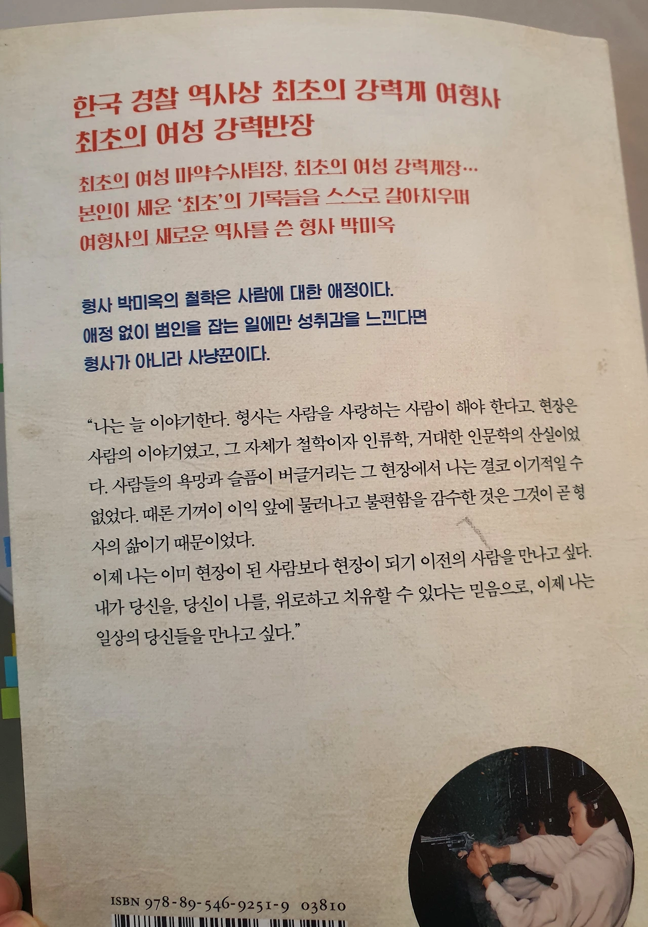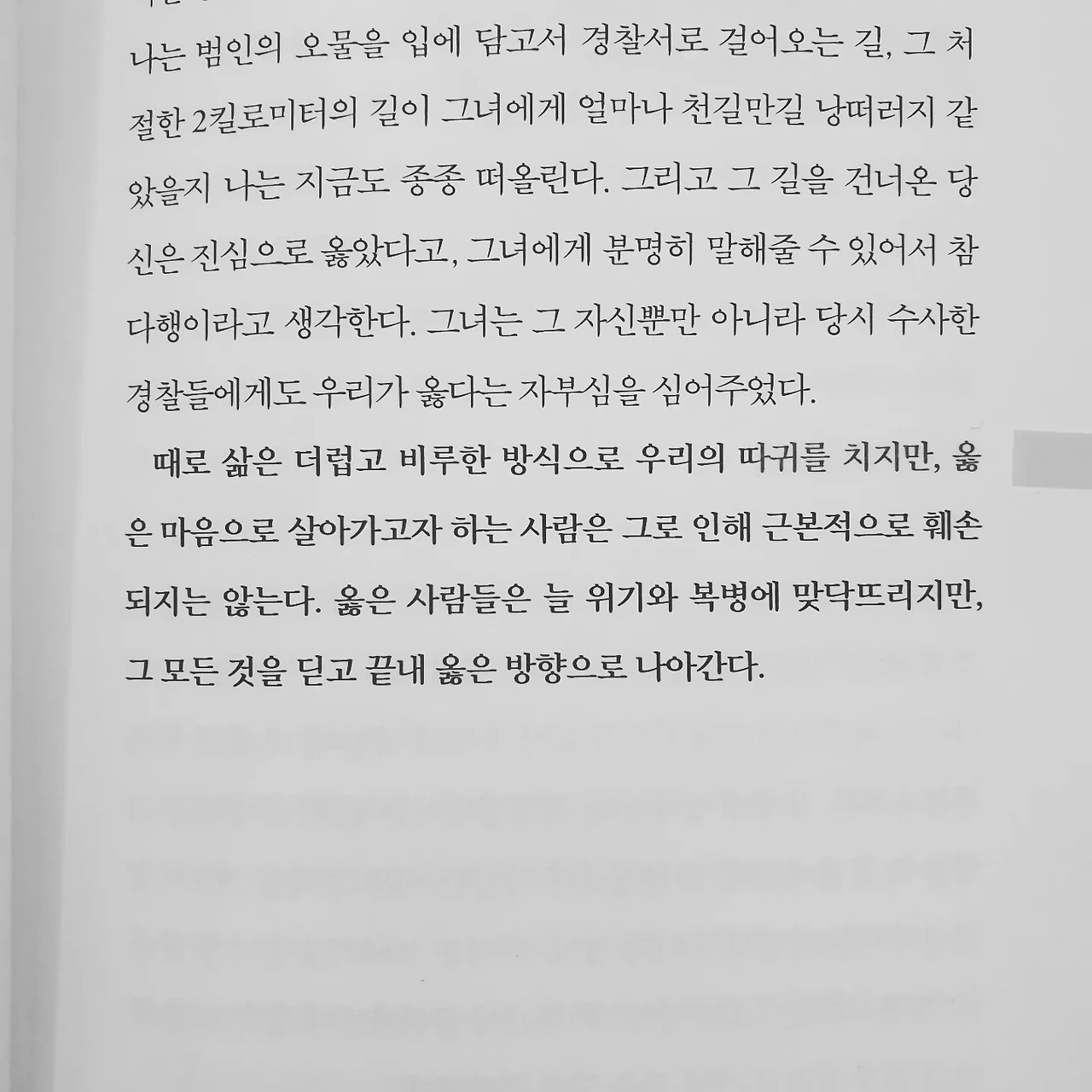 “형사 박미옥의 철학은 사람에 대한 애정이다. 애정 없이 범인을 잡는 일에만 성취감을 느낀다면 형사가 아니라 사냥꾼이다.” _p299