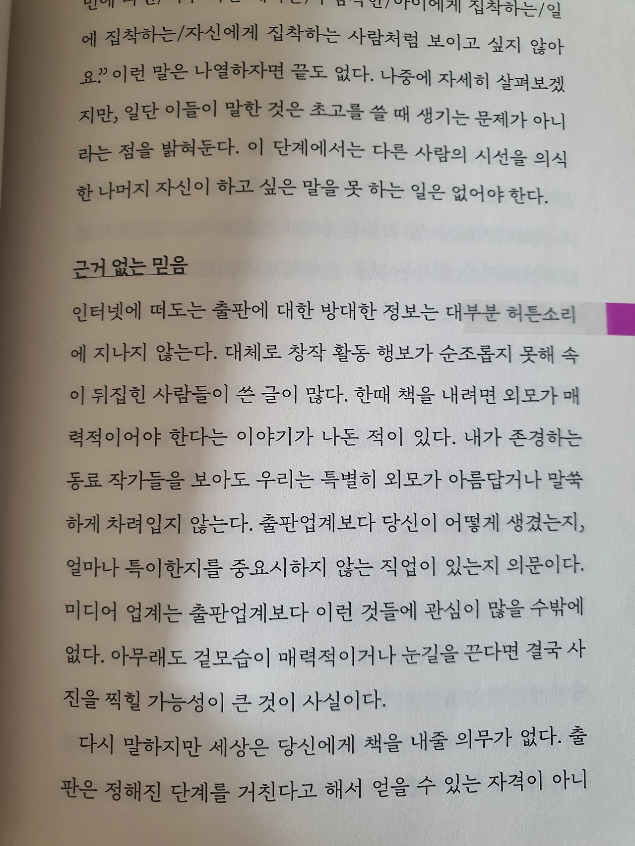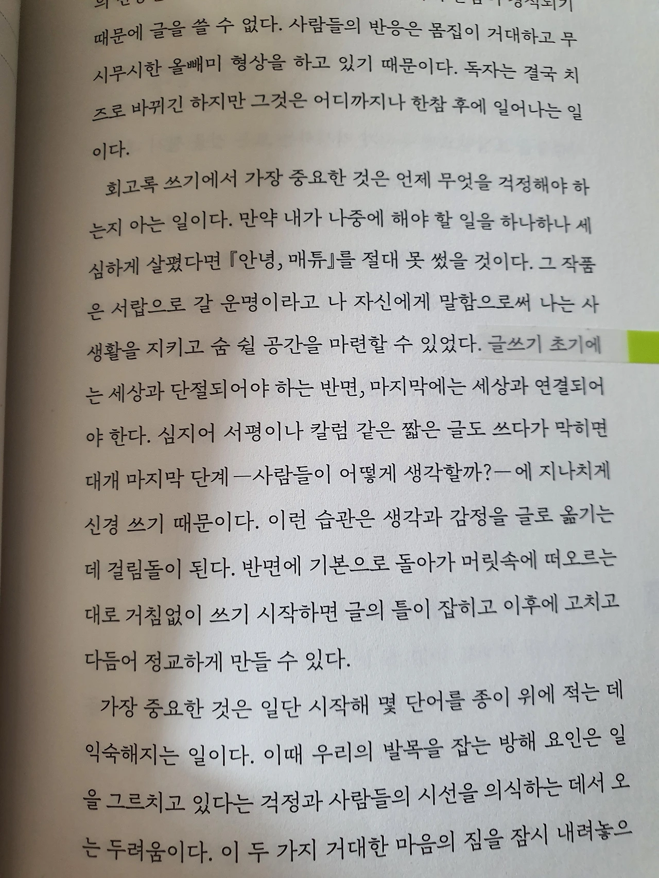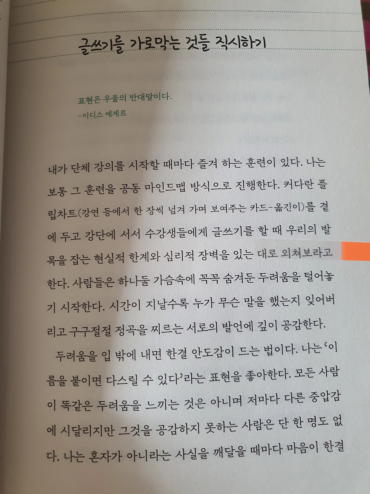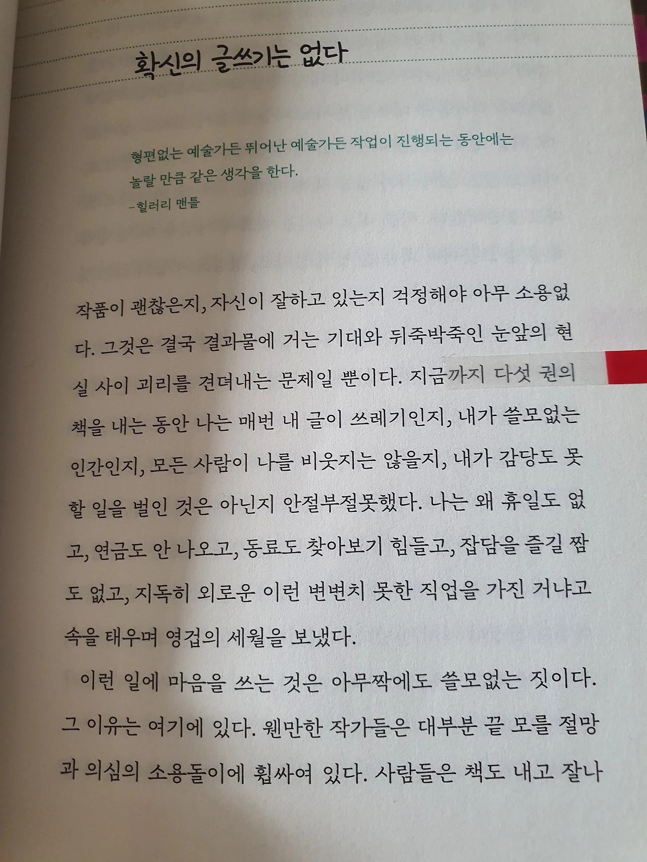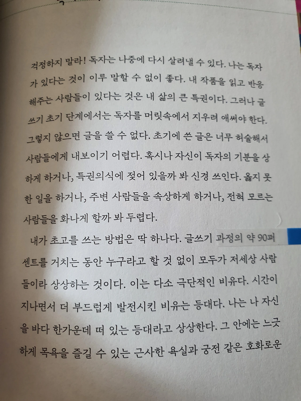 "지금까지 다섯 권의 책을 내는 동안 나는 매번 내 글이 쓰레기인지, 내가 쓸모없는 인간인지, 모든 사람이 나를 비웃지는 않을지, 내가 감당도 못할 일을 벌인 것은 아닌지 안절부절못했다." _p.41
