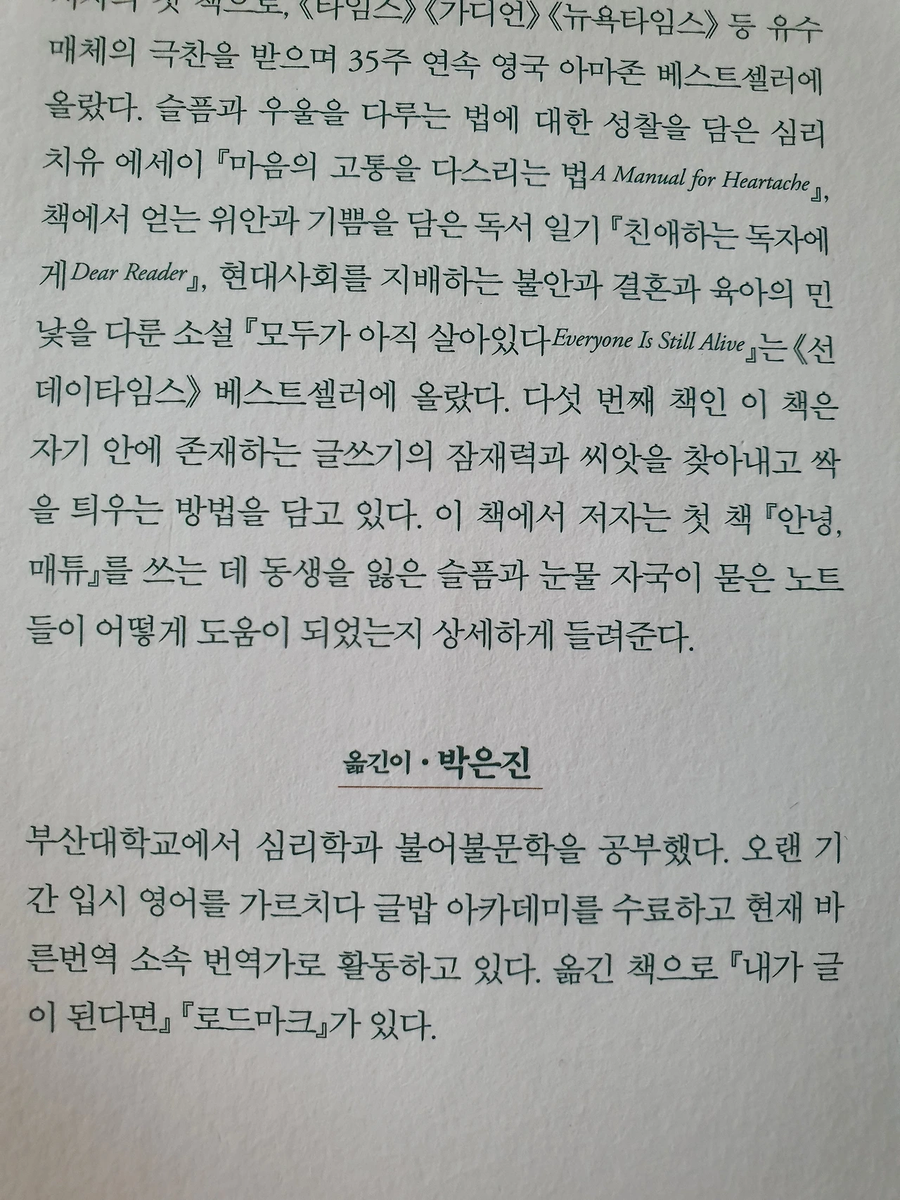 덧붙여 말하면 출간하시고 지금도 활발히 활동 중이신 정신과 전문의 모 작가님도 이 말씀을 어제 하신 걸 봤습니다. 제 글에 인용하려고 보관하고 있습니다.
