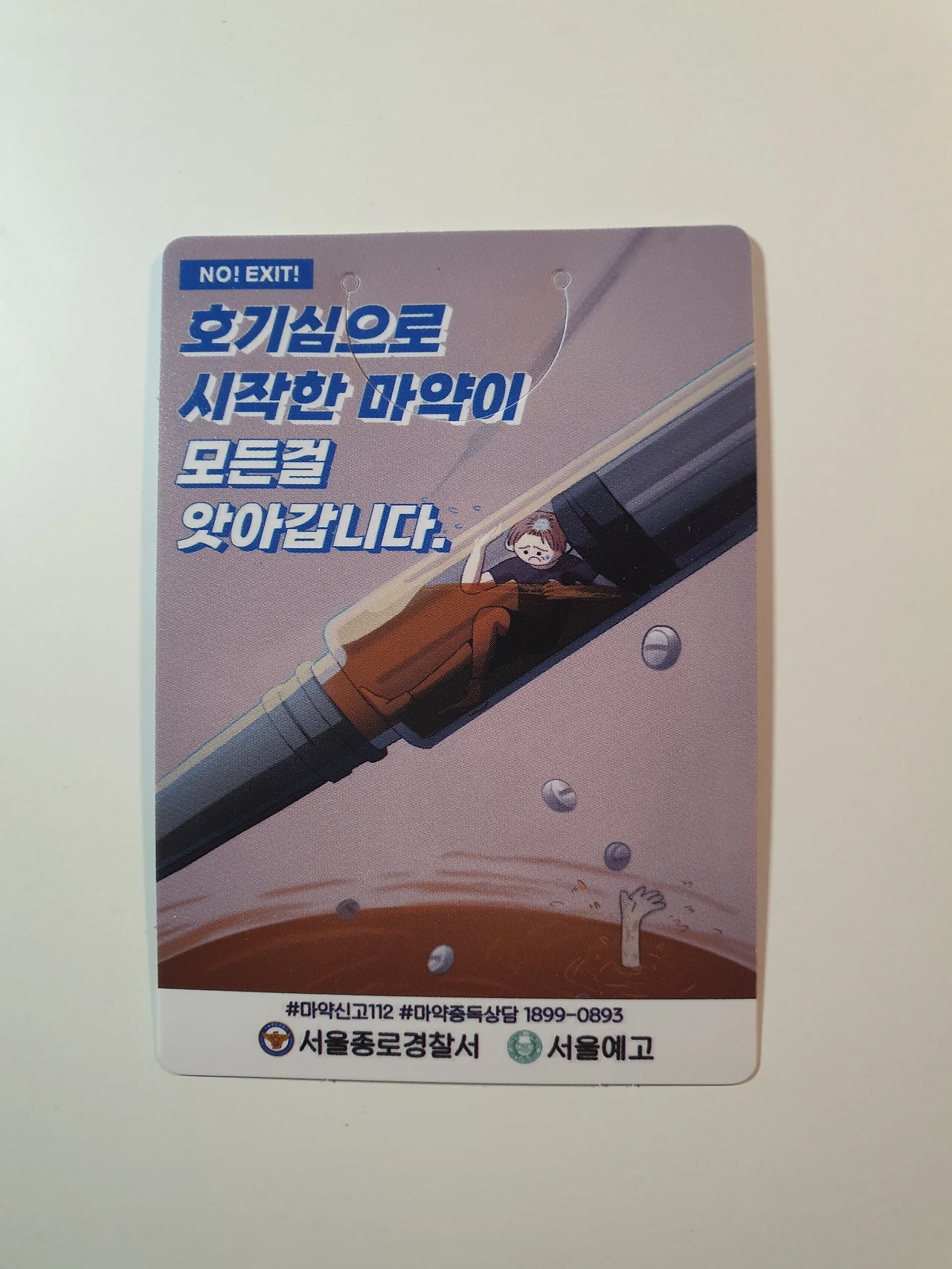 요즘 아이들이 마약에 정말 많이 노출이 되었나보다. 서점에서 가져온 책갈피에는 아이들이 어릴 때부터 다녔던 서점인데 이런 내용은 처음이었다. 하지만 당황하는 마음보다는 아이들을 생각하면 마음이 좀 아프고 짠하다.