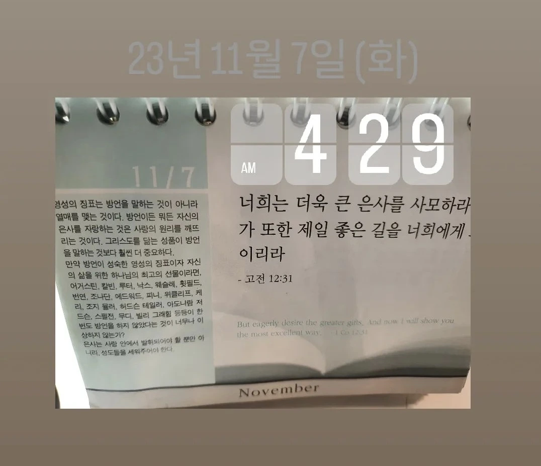 매주 화/토요일에는 동일한 주제로 글을 올립니다. 매일 보는 꾸준공쥬(허밍벌드/버드)는 눈에 보이지 않아서 오늘 말씀에 제 일어난 시각 기록을 합니다.