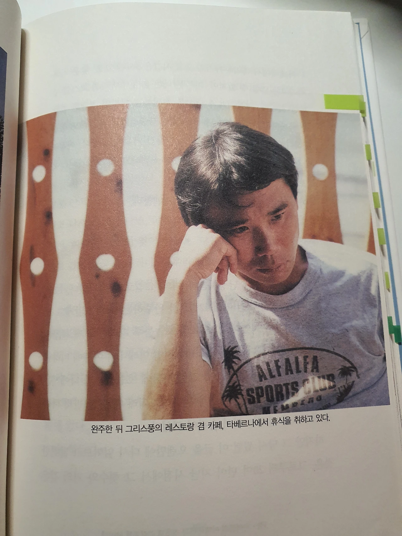 무라카미 하루키 얼굴을 자세히 본 건 이번이 처음이다. 감히 저번부터 느끼지만 비슷한 부분이 있다. 혼자 있기를 좋아하고 내 이야기를 하는 걸 좋아하지 않고 남과 겨루는 걸 좋아하지 않는 것 등 사뭇 비슷해서 내가 제대로 망상에 빠진 게 아닌가 싶다가도 '아니지.. 여기 이렇게 써있잖아?'라고 플래그를 꽤 많이 붙이고 있는 나를 보고는 나도 모르게 피식 웃어 버린다.