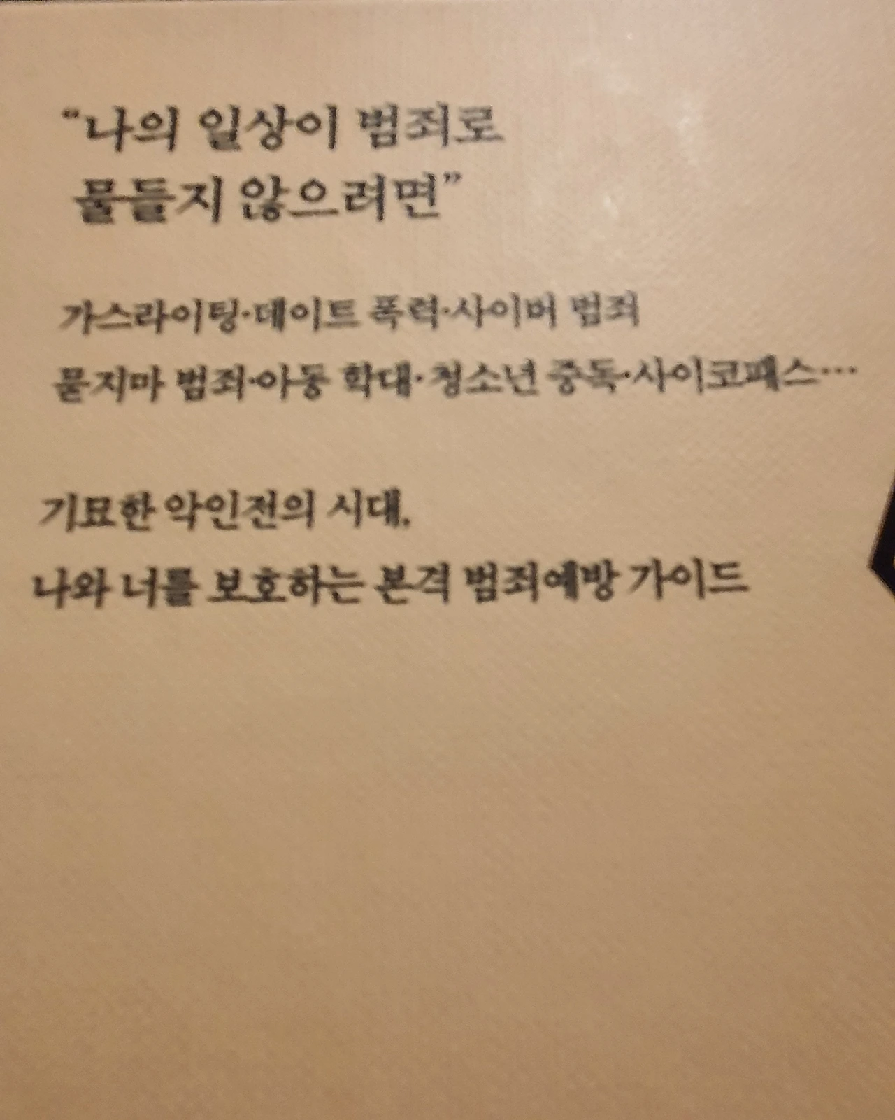 "혼란한 시대의 범죄 대처법으로는 우선 문단속을 잘해야 한다. 다시 말해 범죄 환경을 없애는 것이다. (...) 그런데 현대 사회에 두드러지게 나타나고 있는 범죄는 그 환경을 없애는 것도 당연히 중요하지만 그에 못지않게 중요한 것이 내 마음의 단속이다. 내 마음의 범죄 환경을 없애는 것도 현대 사회를 살아가는 우리에게는 반드시 필요하다. 불안과 두려움을 극복하려 노력하고, 항상 가짜 정보에 대한 검증과 확인 과정을 거치고, 사회 구성원에 대한 서로의 신뢰를 회복해야 한다. 그래서 열심히 노력하는 사람은 반드시 잘 된다는 믿음을 지켜가는 것이 우리에게 더 필요한 가치이지 않을까 한다." _p.209