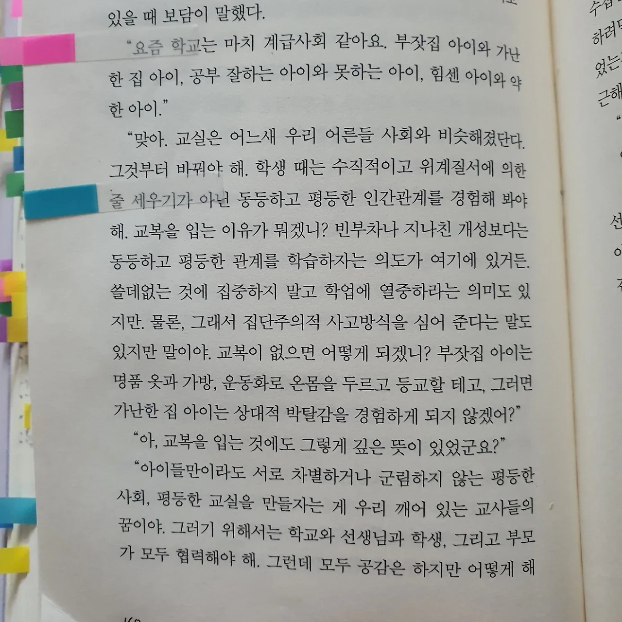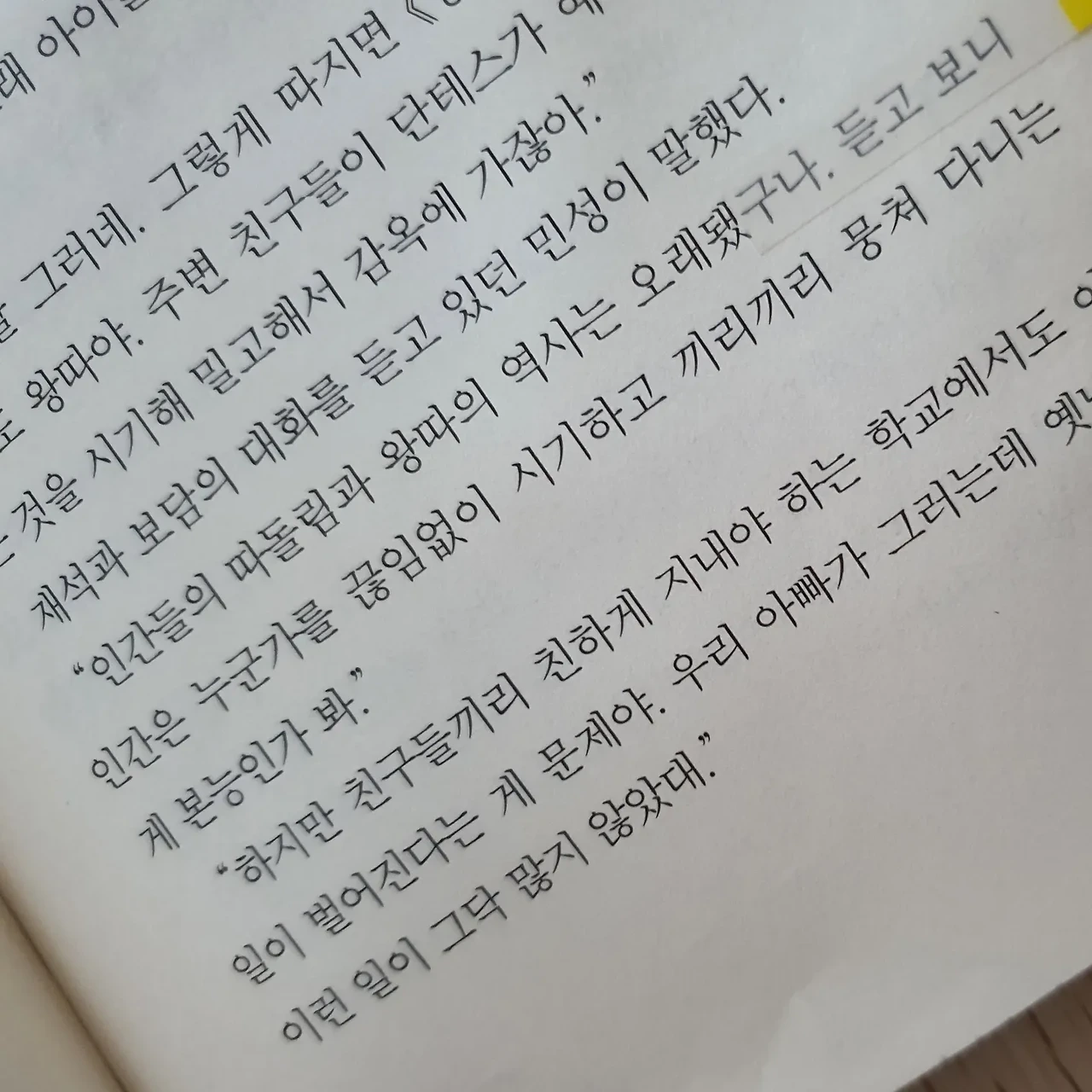 그럼에도 불구하고, 이 말은 변할 수 없는 진리인가.. 싶어서 마음이 좀 아프다. "노인이 빨리 죽겠다는 거하고, 노처녀가 시집 안 가겠다는 거 그리고 장사꾼이 본전에 판다는 거에 '우리 반에는 왕따나 학교 폭력이 없어요' 이렇게 말하는 선생님도 추가해야 하지 않을까 싶어." _p.126