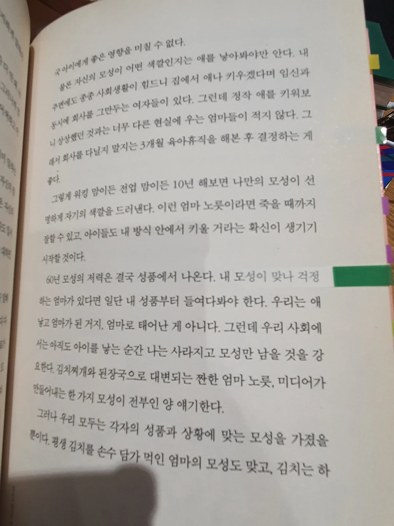 "60년 모성의 저력은 결국 성품에서 나온다. 내 모성이 맞나 걱정하는 엄마가 있다면 일단 내 성품부터 들여다봐야 한다. 우리는 애 낳고 엄마가 된 거지, 엄마로 태어난 게 아니다. (...)"
