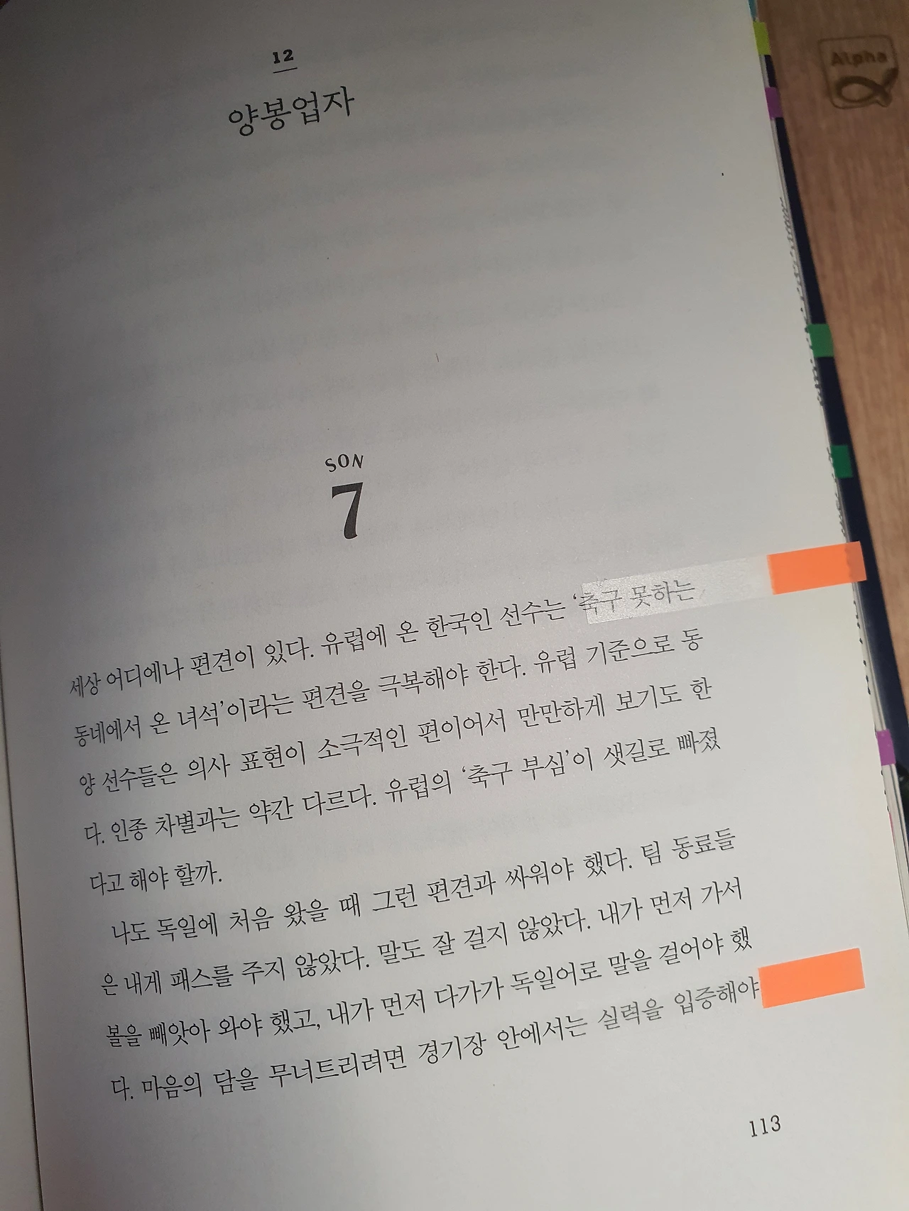 나도 독일에 처음 왔을 때 그런 편견과 싸워야 했다. 팀 동료들은 내게 패스를 주지 않았다. 말도 잘 걸지 않았다. 내가 먼저 가서 볼을 빼앗아 와야 했고, 내가 먼저 다가가 독일어로 말을 걸어야 했다. 마음의 담을 무너트리려면 경기장 안에서 실력을 입증해야 하고, 밖에서는 '내가 너희 문화를 배우려고 노력 중이다'라는 모습을 보여야 한다." _p.114