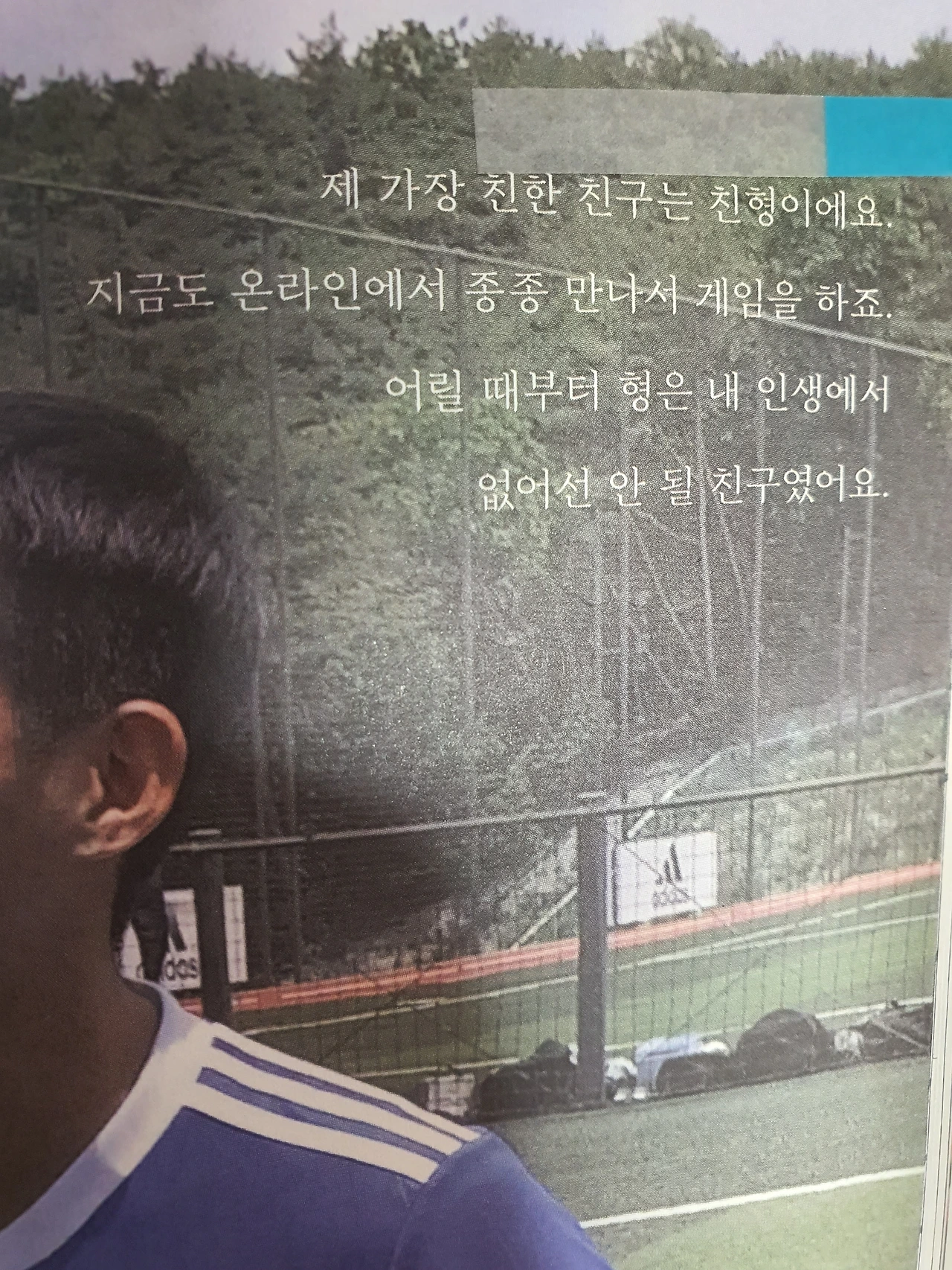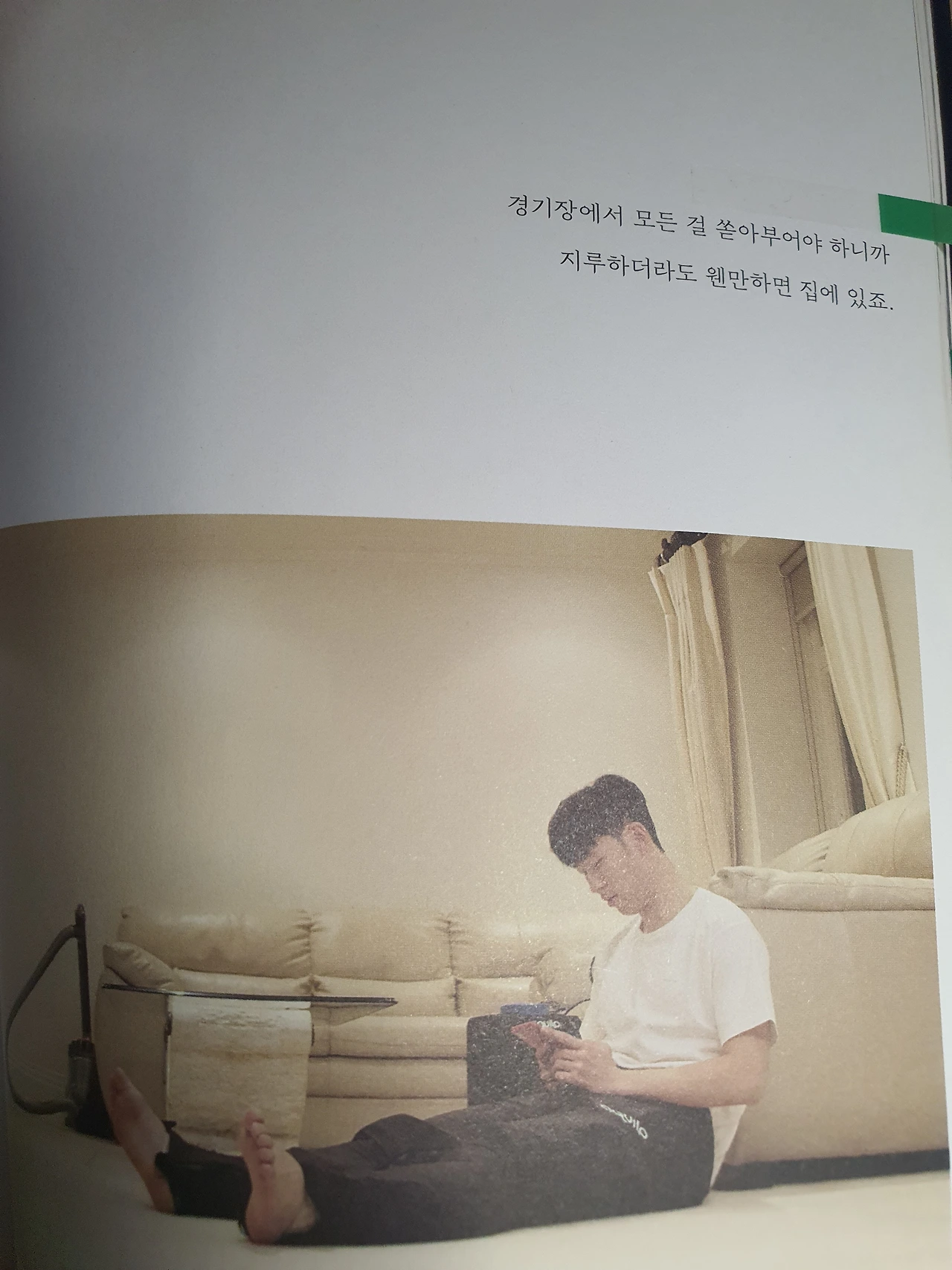 "어린 나이부터 타지에서 혼자 지내 와서 그런지 태극기는 내게 더 특별하게 다가온다. 해외 여행을 가면 태극기나 한국 기업의 로고를 보면서 뿌듯해하는 애국자가 된다고 하는데 비슷한 심리인지도 모르겠다." _p.135