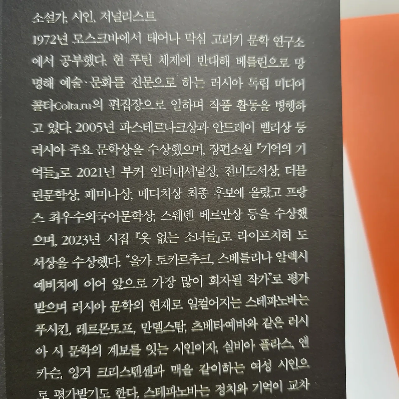 드디어 이 길고도 긴 588 페이지가 되는 장편소설을 그것도 러시아의 문인이며 베를린으로 망명한 한 소설가이자, 시인, 저널리스트의 소설을 읽을 수 있는 건 행운이자 참 감사한 일인 것 같습니다. 다시 한번 이런 기회를 주신 복복서가 출판사에 감사한 마음을 전합니다.