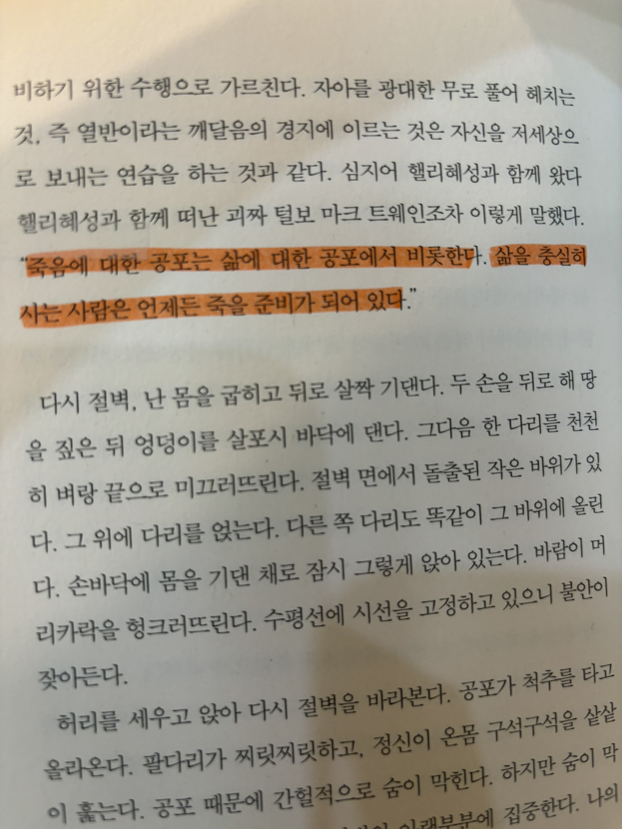 “죽음에 대한 공포는 삶에 대한 공포에서 비롯한다. 삶을 충실히 사는 사람은 언제든 죽을 준비가 되어 있다.” _p.226